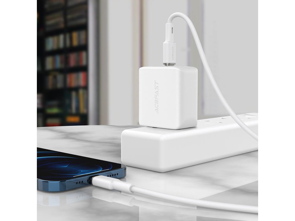 Silikonový nabíjecí a datový kabel 3A ~ AceFast C2-01 ~ USB-C/Lightning 1,2m - Bílý