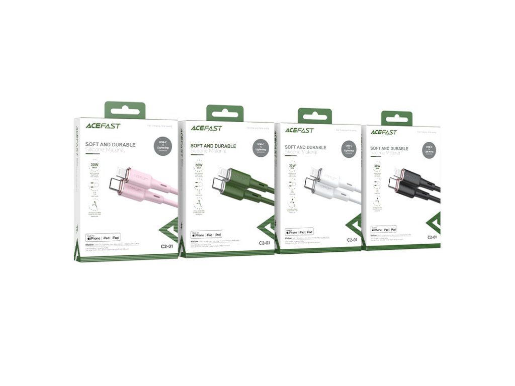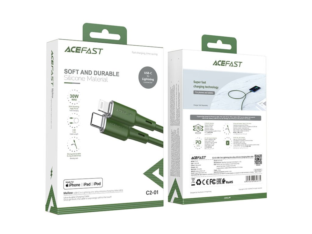 Silikonový nabíjecí a datový kabel C2-01 Acefast MFI USB Type C - Lightning 1,2m, 30W, 3A