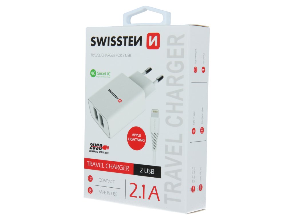 Kvalitní nabíječka s výstupním proudem 2,1A , technologií Smart IC a dvěma výstupy USB. V balení 1,2 m dlouhý kabel lightning. Baleno v blistru SWISSTEN.