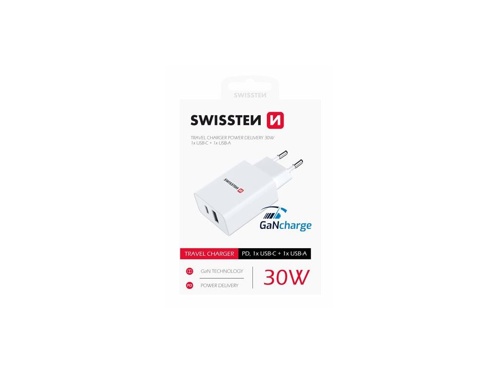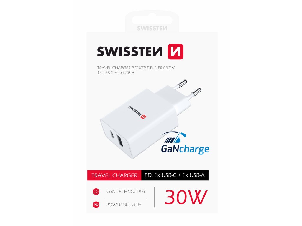 Nabíječka z nové řady nabíječek SWISSTEN s revoluční technologií GaN. Výstupním portem USB-C a USB-A je vybaven technologií rychlého nabíjení Power Delivery a Qualcomm s celkovým výkonem 30W. Baleno v blistru SWISSTEN