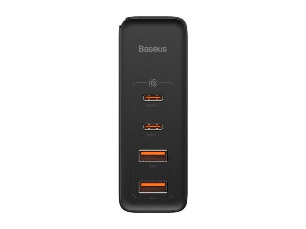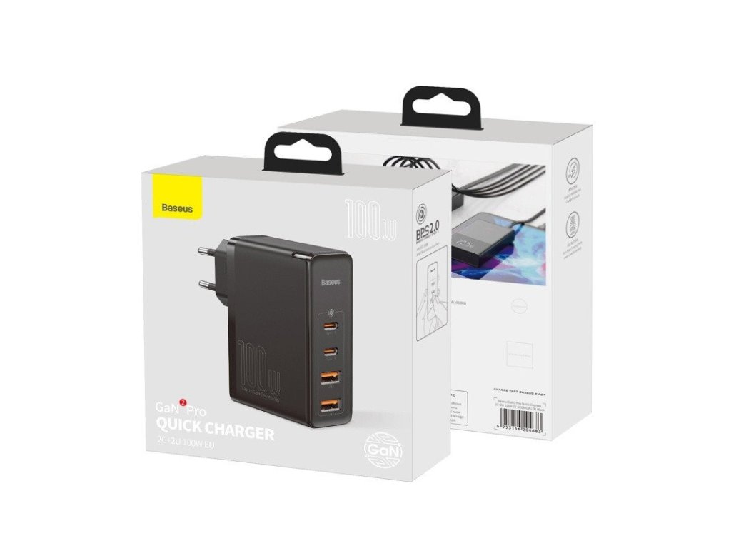 Baseus GaN2 Pro Quick Charger 2C + 2U 100W s výkonem až 100W a čtyřmi konektory - 2x USB Type-C, 2x USB-A. Lze použít na nabíjení notebooků ale i telefonů Obsahuje 100W Type-C to Type-C nabíjecí kabel. Vlastnosti - Vstupní AC 100V-240V, 50/60Hz, 2,5A Max. - Výstup - USB-C: DC 5V/3A, 9V/3A, 12V/3A, 15V/3A, 20V/5A (max. 100W) - USB: DC 4,5V/5A, 5V/4,5A, 9V/3A, 12V/2,5A, 20V/1,5A (max. 30W) - Kombinované výstupní parametry: USB-C + Type-C: 65W+30W USB-C + USB-A: 65W+30W USB-C + Type-C + USB-A: 65W+20W+18W 2x Type-C + 2x USB-A: 60W+20W+15W USB-A + USB-A: 15W+15WDoplňkové parametry