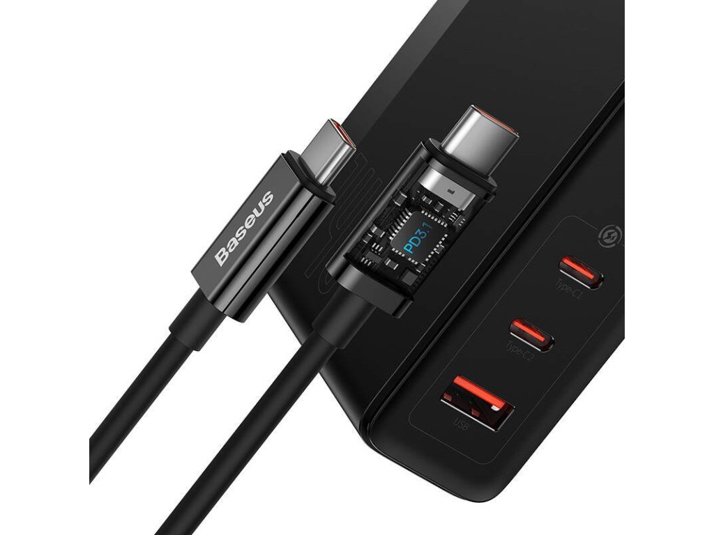 Baseus GaN5 Pro Wall Charger 2xUSB-C + USB 140W EU Black - velmi výkonná sítová nabíjecka s výkonem až 140W pri zachování velmi kompaktních rozmeru. Je vybavena konektory 2x USB-C a 1x USB-A, podporuje nabíjecí protokoly USB Power Delivery 3.1, Quick Charge i PPS. Ideální pro moderní výkonné notebooky, tablety, smartphony a další. Díky technologii GaN je menší o 25% a lehcí o 30% než standardní 140W adaptér od Applu, který má jen jeden konektor.Doplňkové parametry