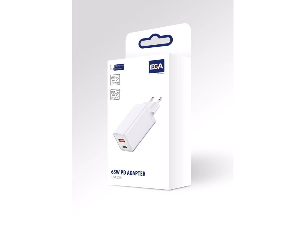 Rychlonabíječka - EnviroBest EGA C65 - 1x USB-C / 1x USB-A - 65W - Bílý