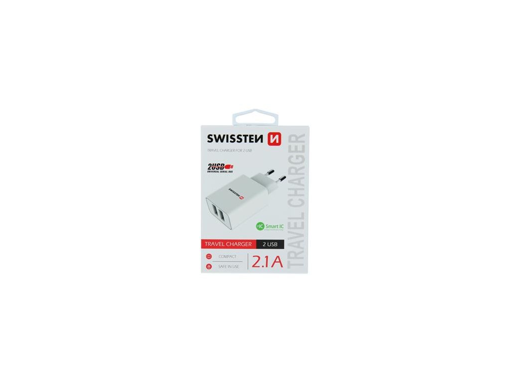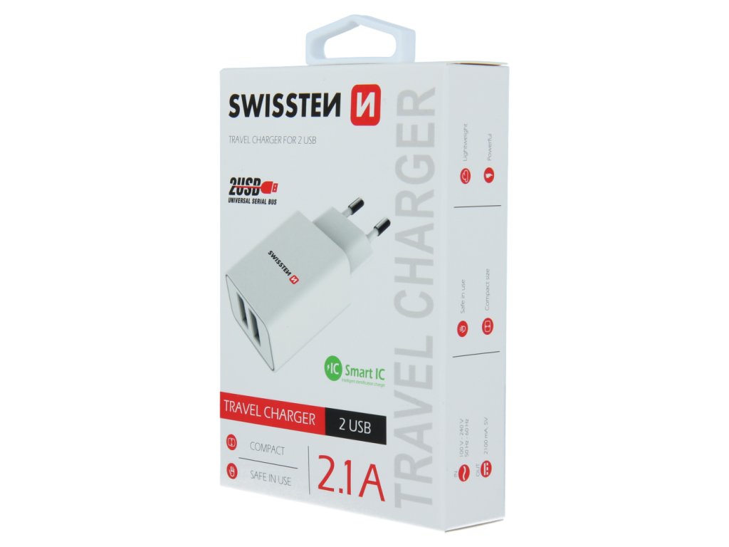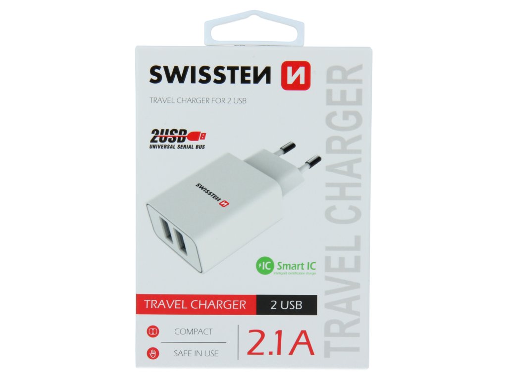 Kvalitní nabíječka s výstupním proudem 2,1A , technologií Smart IC a dvěma výstupy USB. Baleno v blistru SWISSTEN.