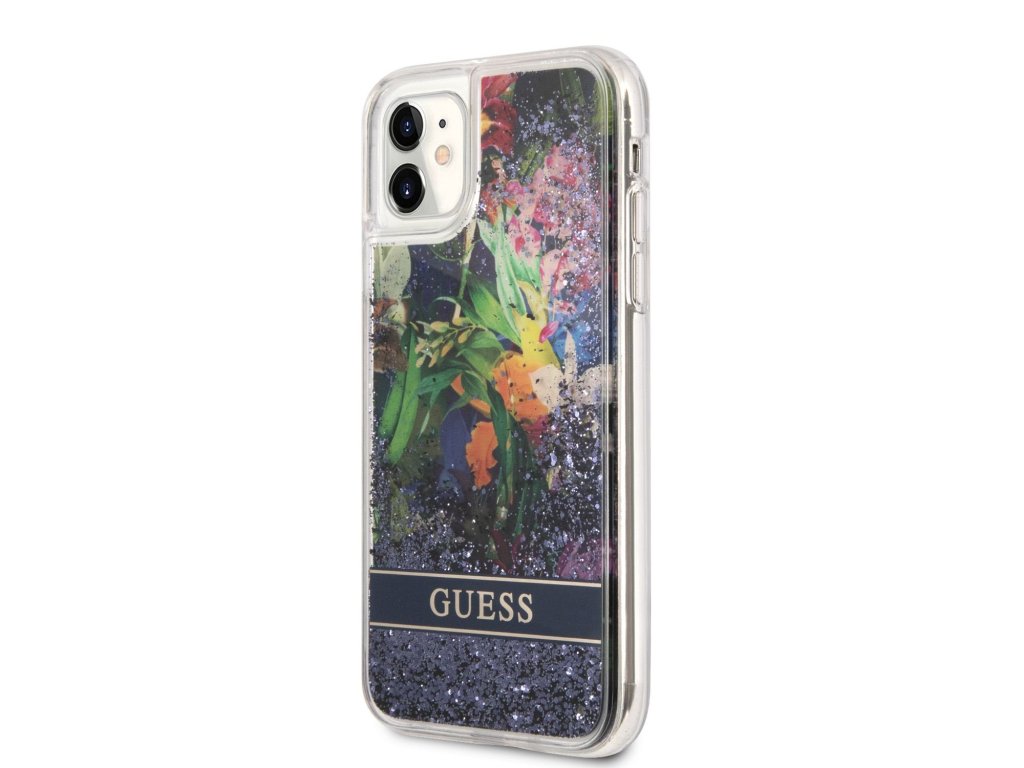 Silikonový kryt - Guess Liquid Glitter Flower pro iPhone 11 - Modrý