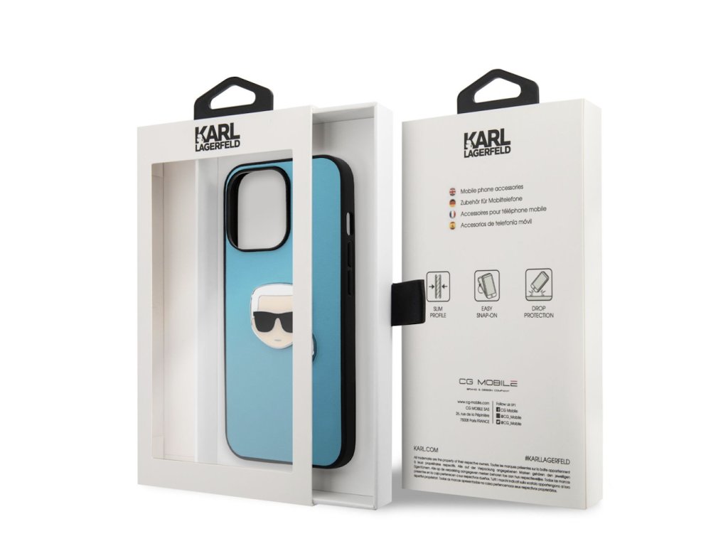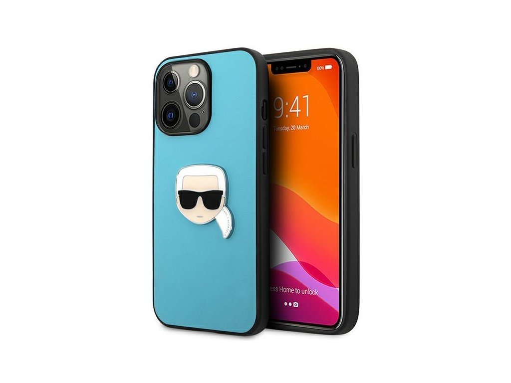 Kožený kryt - Karl Lagerfeld - Karl Head - iPhone 13 Pro - Modrý