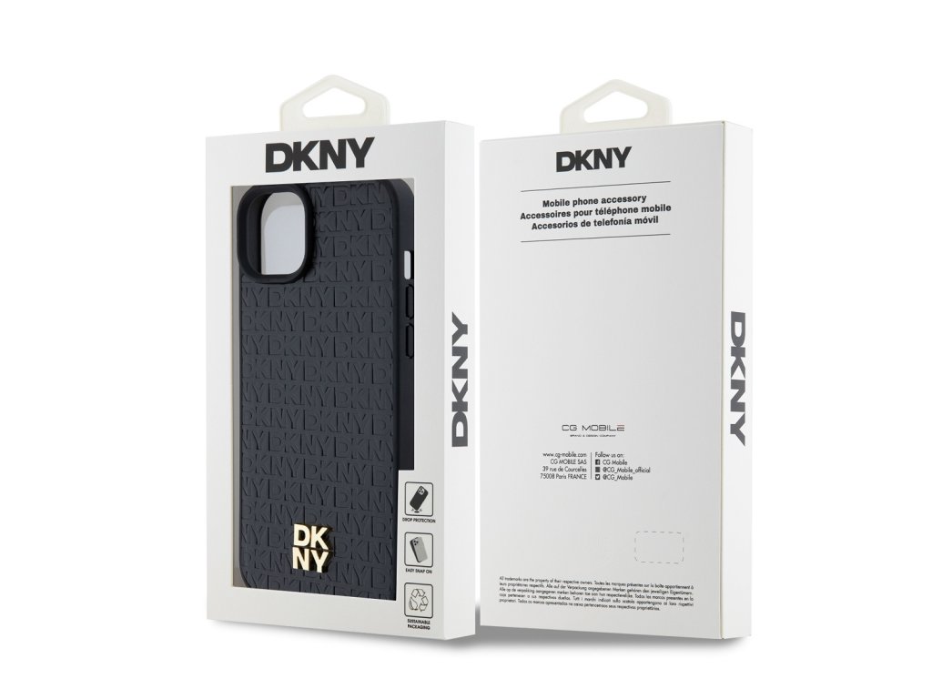 DKNY PU Leather Repeat Pattern Stack Logo Magsafe Zadní Kryt pro iPhone 13 Black