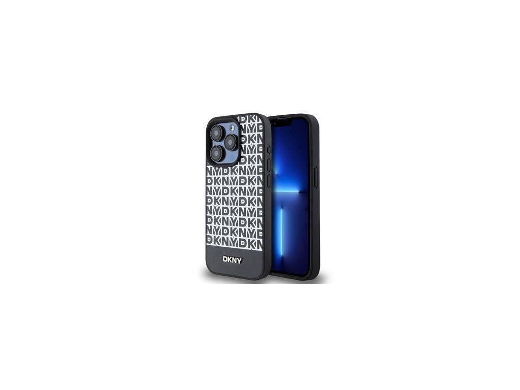DKNY PU Leather Repeat Pattern Bottom Stripe Zadní Kryt pro iPhone 14 Pro Max Black