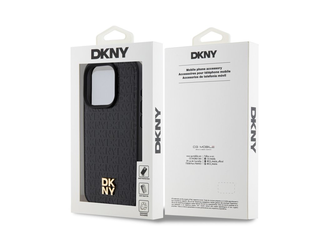 DKNY PU Leather Repeat Pattern Stack Logo Magsafe Zadní Kryt pro iPhone 14 Pro Max Black