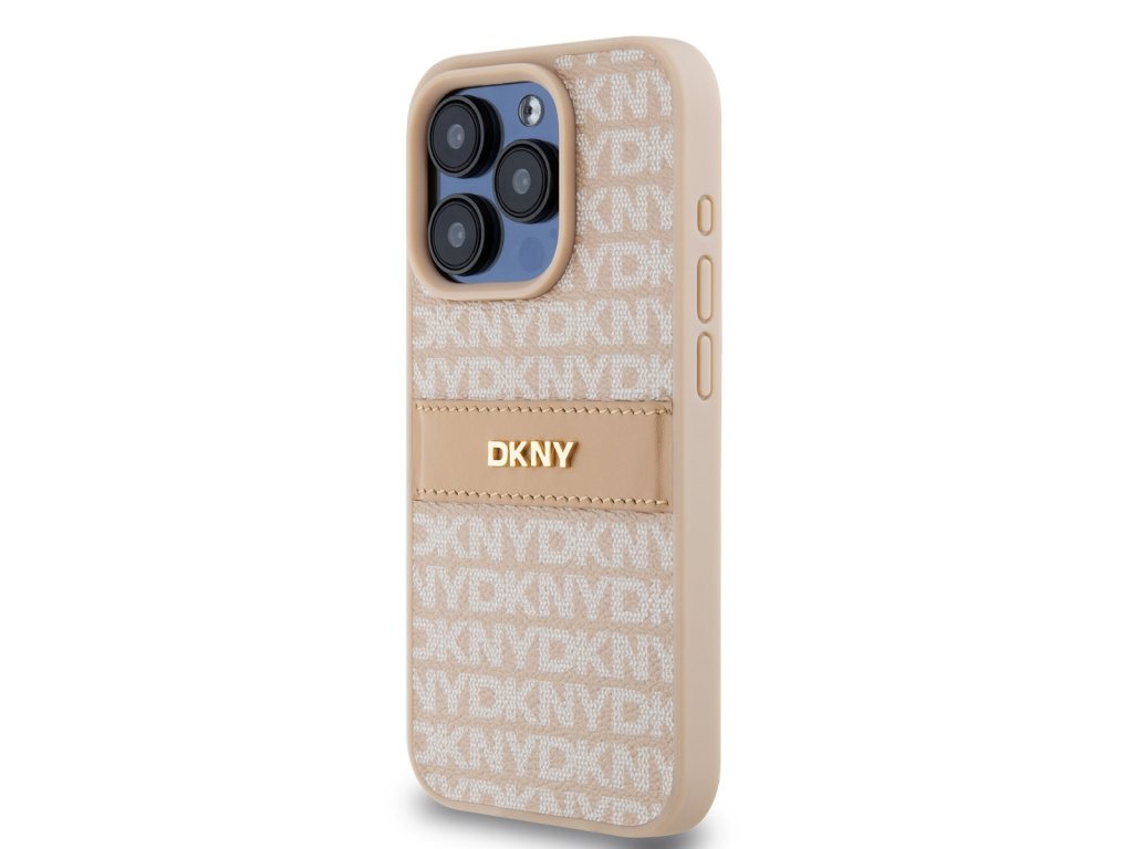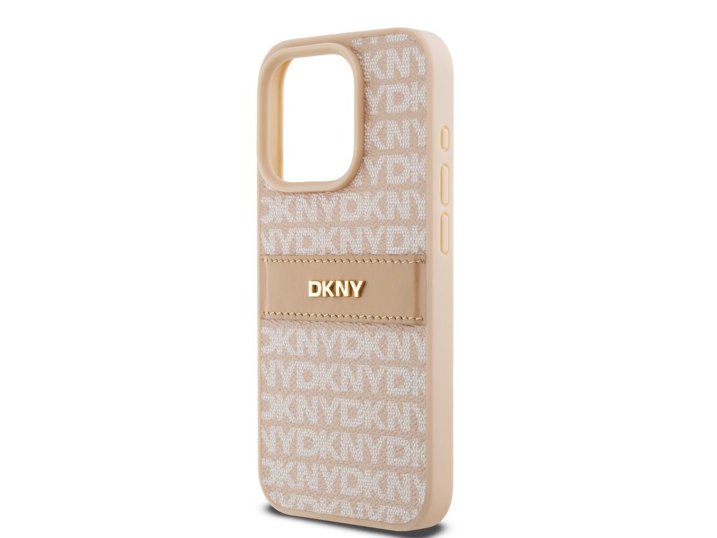 DKNY PU Leather Repeat Pattern Tonal Stripe Zadní Kryt pro iPhone 14 Pro Max Pink