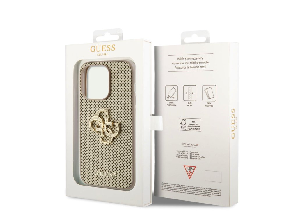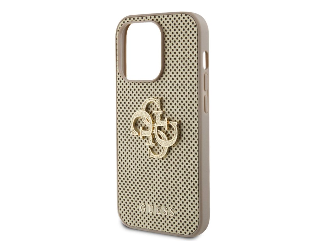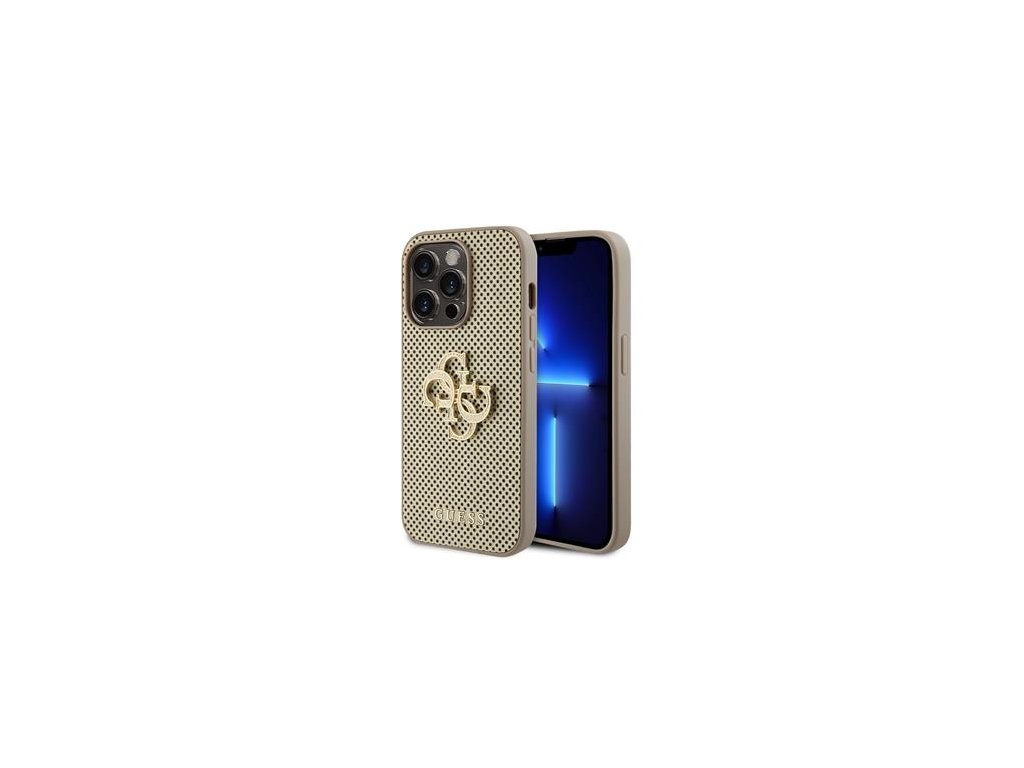 Guess PU Perforated 4G Glitter Metal Logo Zadní Kryt pro iPhone 14 Pro Max Gold