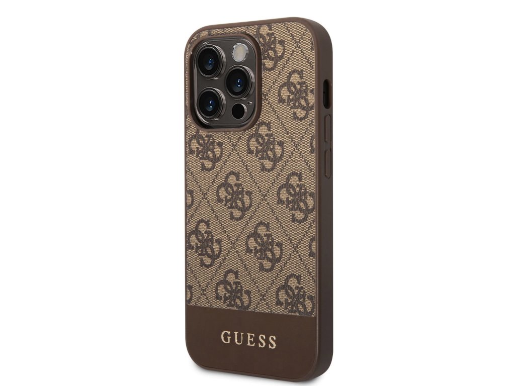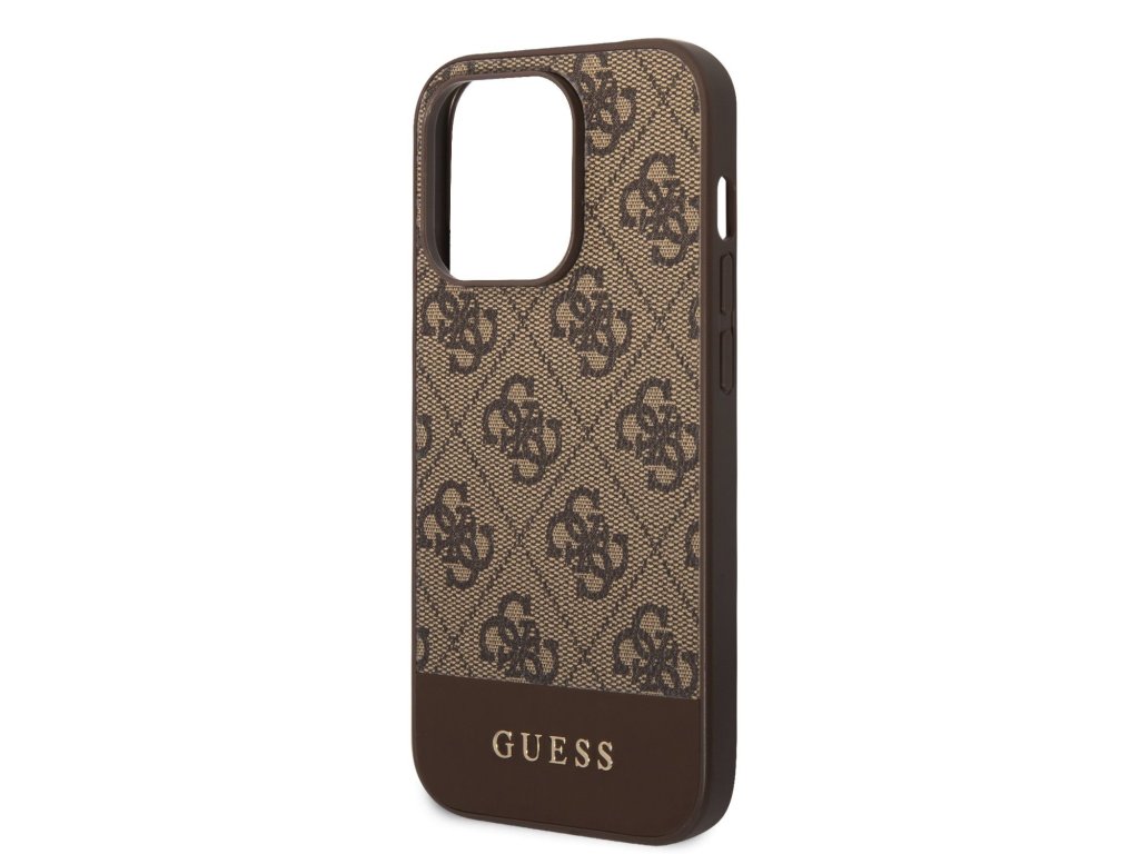 Guess 4G Stripe Zadní Kryt pro iPhone 14 Pro Brown
