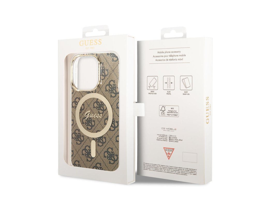 Guess IML 4G MagSafe Zadní Kryt pro iPhone 14 Pro Brown