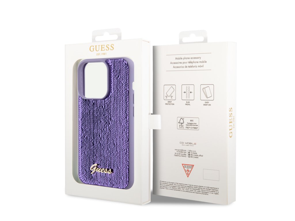 Guess Sequin Script Logo Zadní Kryt pro iPhone 14 Pro Purple
