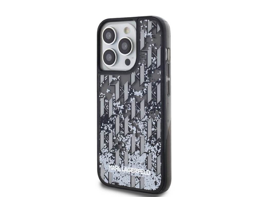Karl Lagerfeld Liquid Glitter Monogram Gradient Zadní Kryt pro iPhone 14 Pro Black