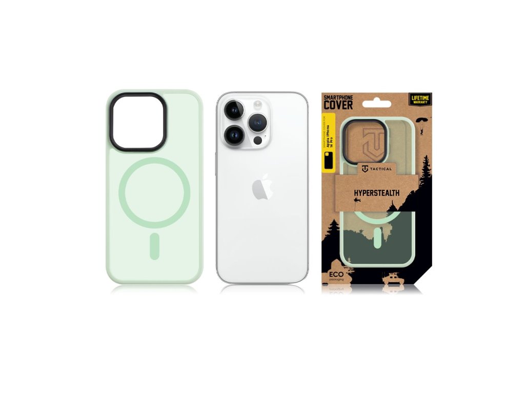 4 barvy, průsvitná záda, podpora Apple MagSafe. Tactical MagForce Hyperstealth vyniká jednoduchým barevným designem, který všude zapadne a hlavně chrání tvůj iPhone. ČISTÝ DESIGN Čistý design s transparentní plochou dodá pouzdru jednoduchost, ergonomičnost a jednoduchý cíl. Jádro krytu je odolné proti nárazu a ochranný mantinel chrání obrazovku telefonu při pádu nebo položením displejem dolu. Okolo čoček fotoaparátu je dominantní ochranný rám. Rám je o něco vyšší než daná soustava čoček a chrání je tak před poškrábáním a poničením. MAGFORCE Kryt Tactical MagForce Hyperstealth disponuje podporou Apple MagSafe. V klidu tedy můžeš využívat bezdrátové nabíjení nebo ostatní magnetické možnosti Apple MagSafe. NEODOLATELNĚ ODOLNÝ U nás v Tactical dbáme na to, aby věci něco vydržely. Proto tento kryt v dané kategorii nabízí jen to nejlepší. Při výrobě jsme použili velice odolné materiály a aplikovali nejnovější technologie pro co nejlepší výstup ochrany. Telefon tak zůstane v bezpečí i v těch nejextrémnějších podmínkách. KONEKTORY Díky preciznímu provedení zůstávají všechny konektory a tlačítka telefonu přístupné. Vsaď na kryty Tactical a zajisti si absolutní ochranu. BE ECO My v Tactical máme rádi přírodu. Všechny naše produkty jsou balené do ECO krabiček z recyklovaného papíru tak, aby co nejméně zatěžovaly životní prostředí. Myslete takticky! KLÍČOVÉ VLASTNOSTI Podpora Apple MagSafe Originální design Průsvitný design SPECIFIKACE Materiál: TPU/ PC MagSafe: Ano Určeno pro Apple iPhone 14 Pro Barva: Světle zelená Beach Green