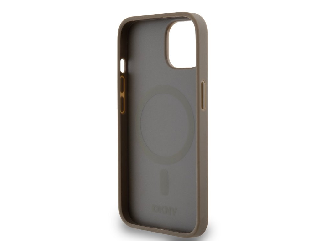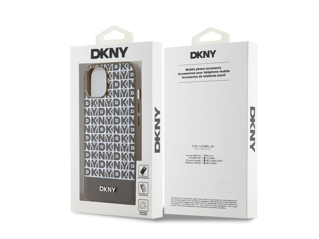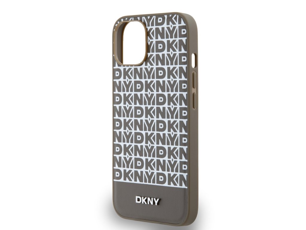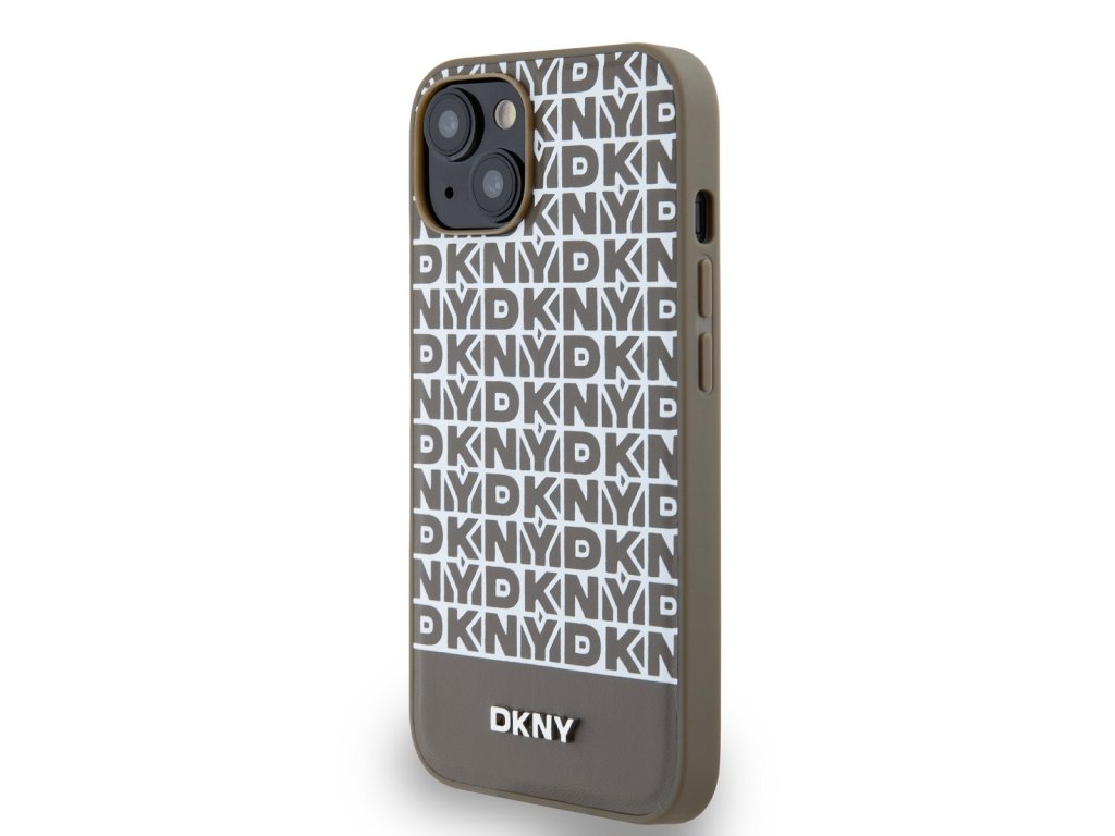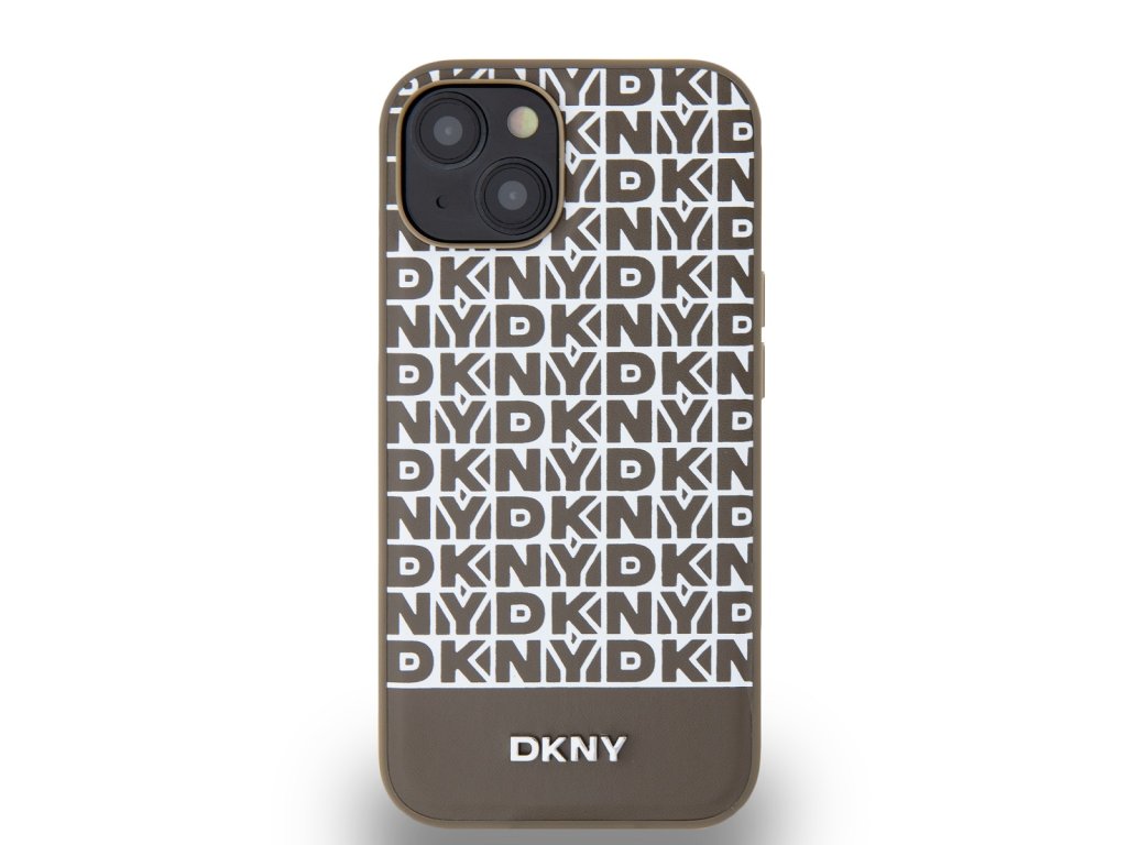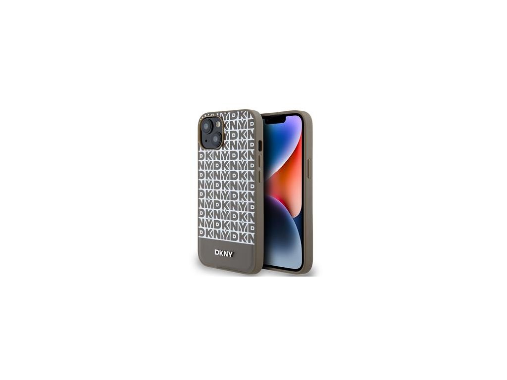 DKNY PU Leather Repeat Pattern Bottom Stripe Zadní Kryt pro iPhone 14 Brown