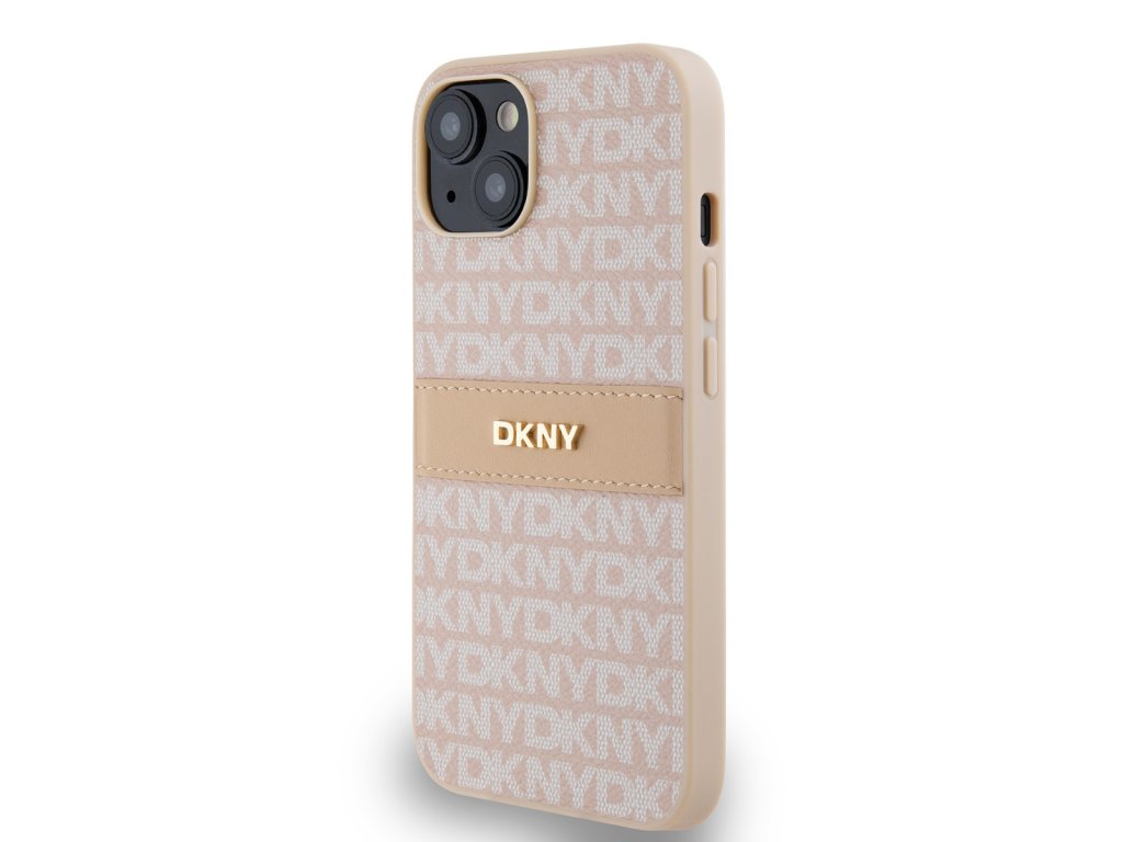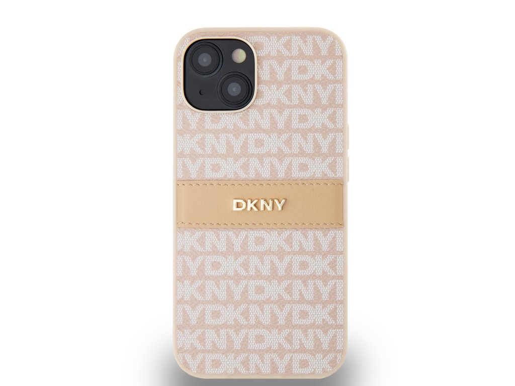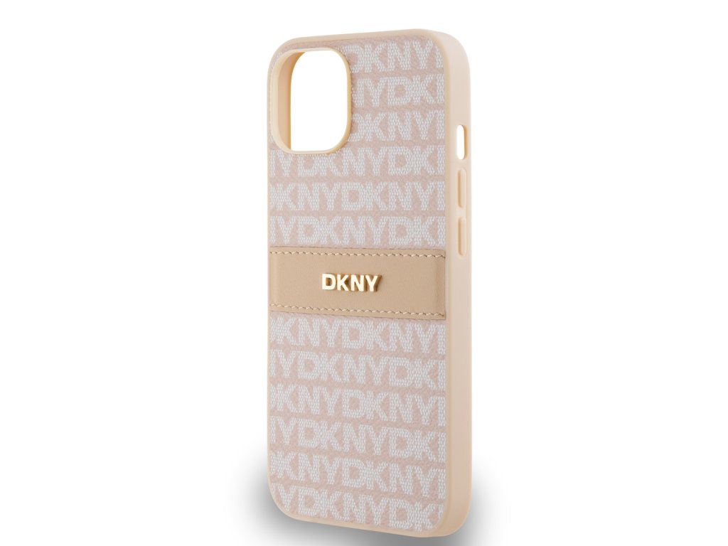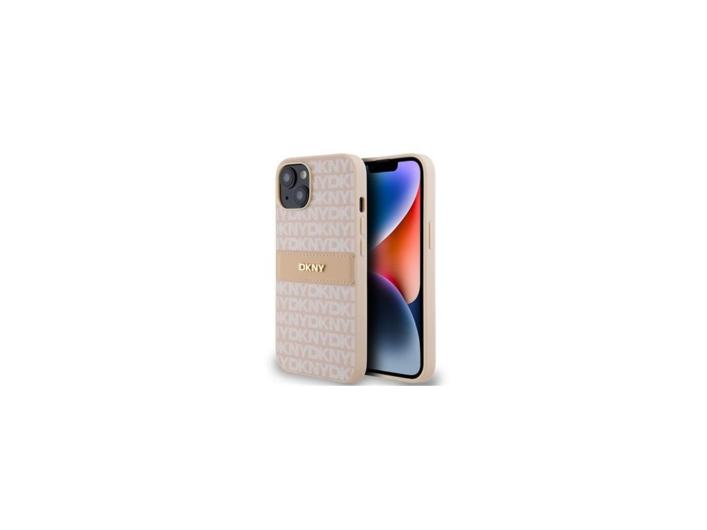 DKNY PU Leather Repeat Pattern Tonal Stripe Zadní Kryt pro iPhone 14 Pink