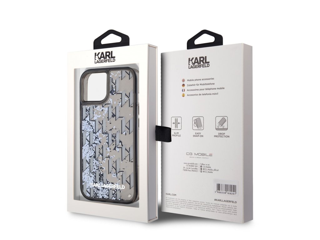 Karl Lagerfeld Liquid Glitter Monogram Gradient Zadní Kryt pro iPhone 14 Black