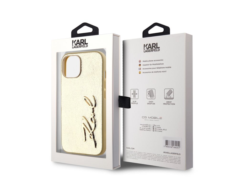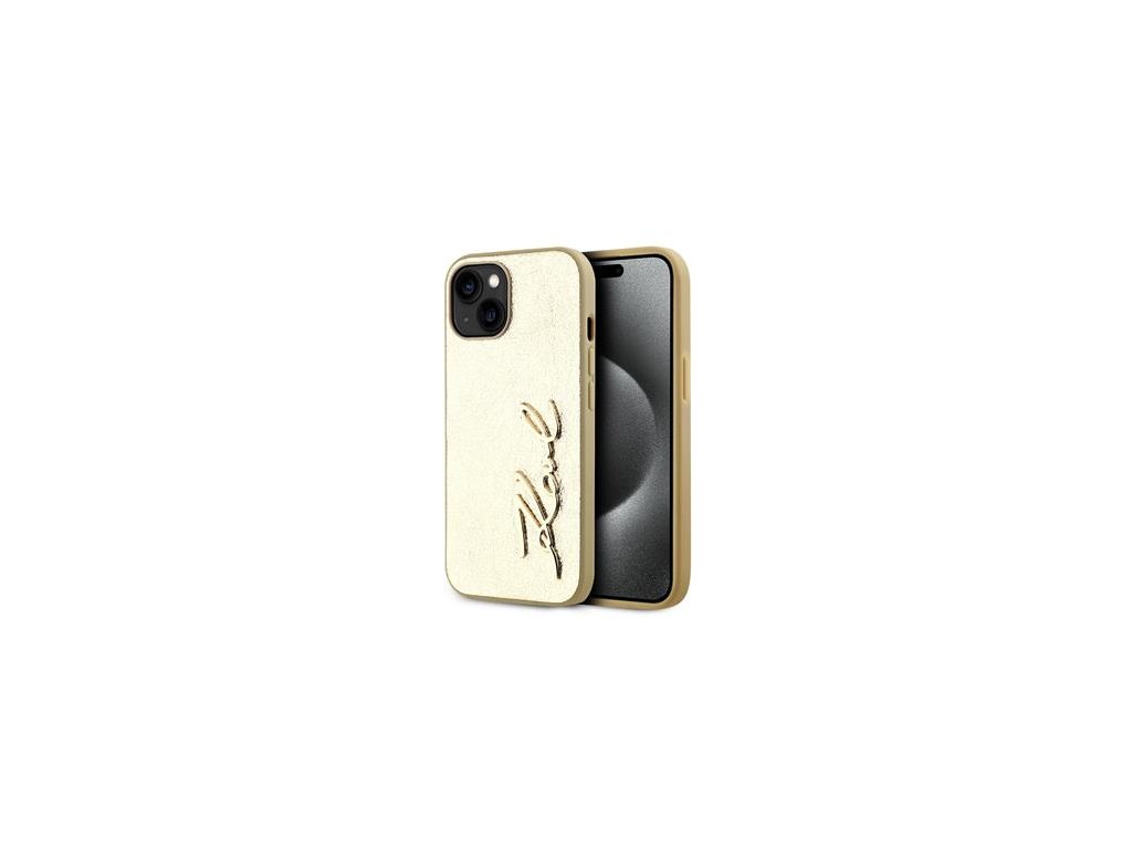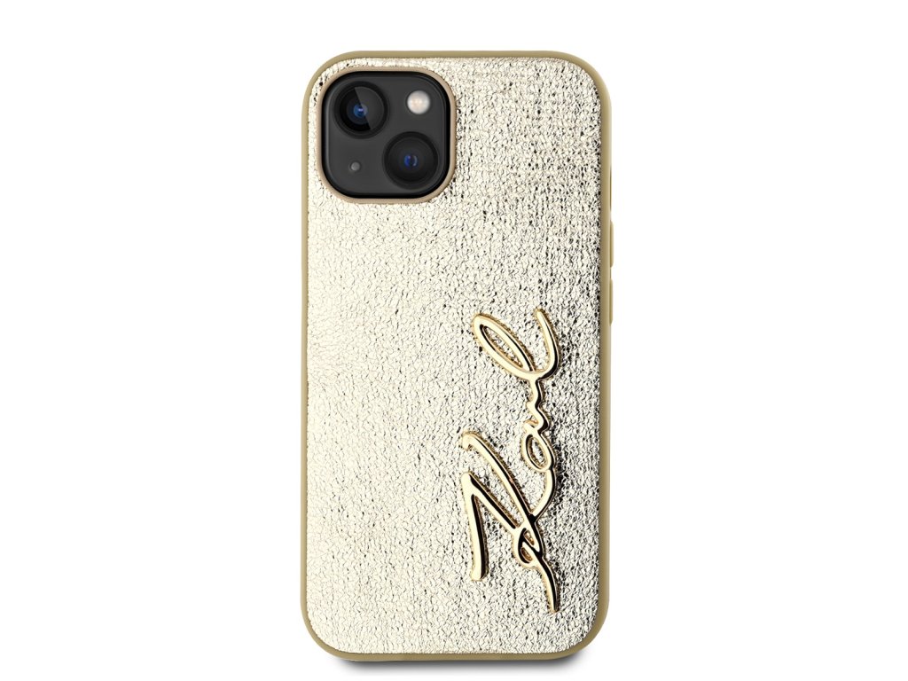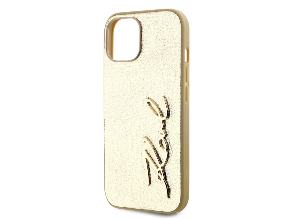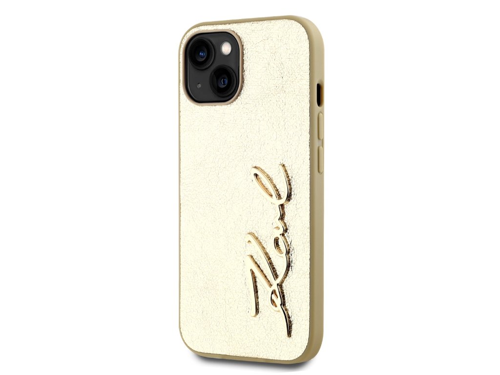 Karl Lagerfeld Wrinkled PU Signature Logo Zadní Kryt pro iPhone 14 Gold