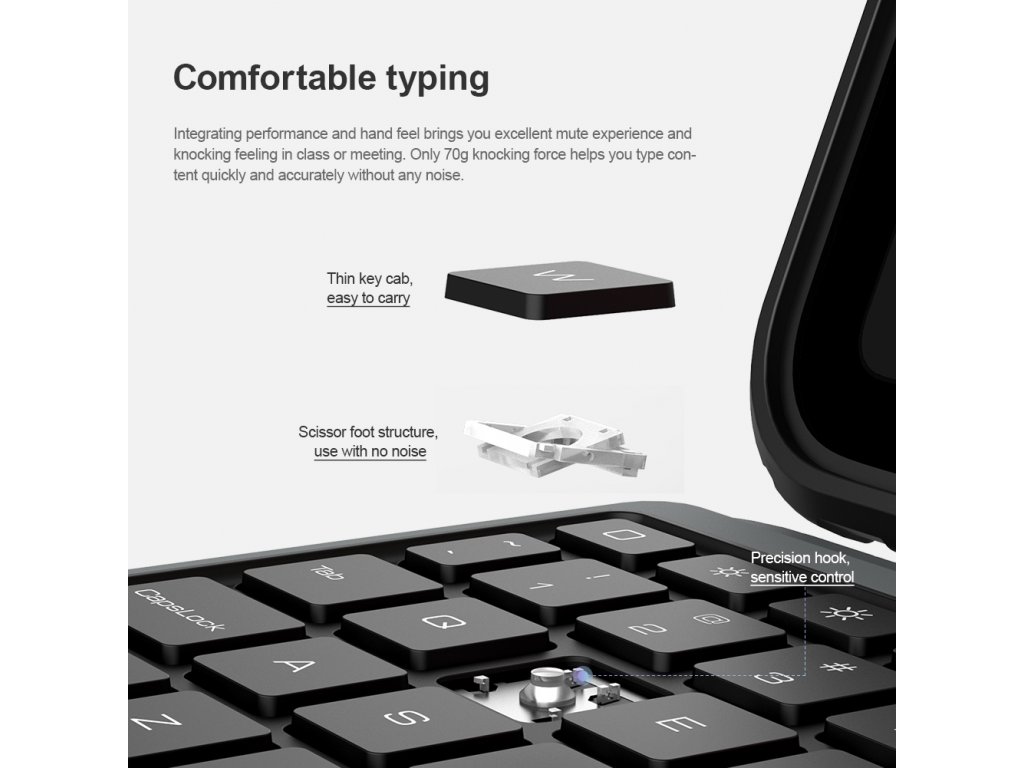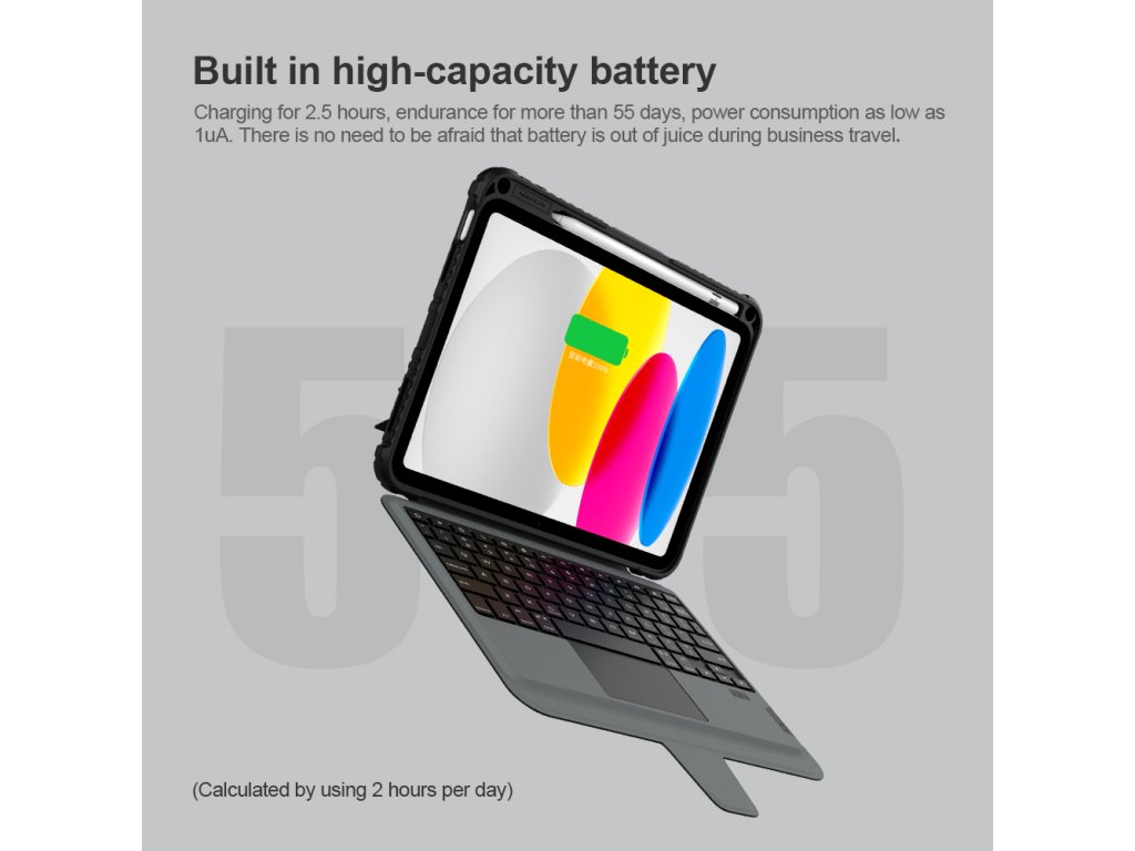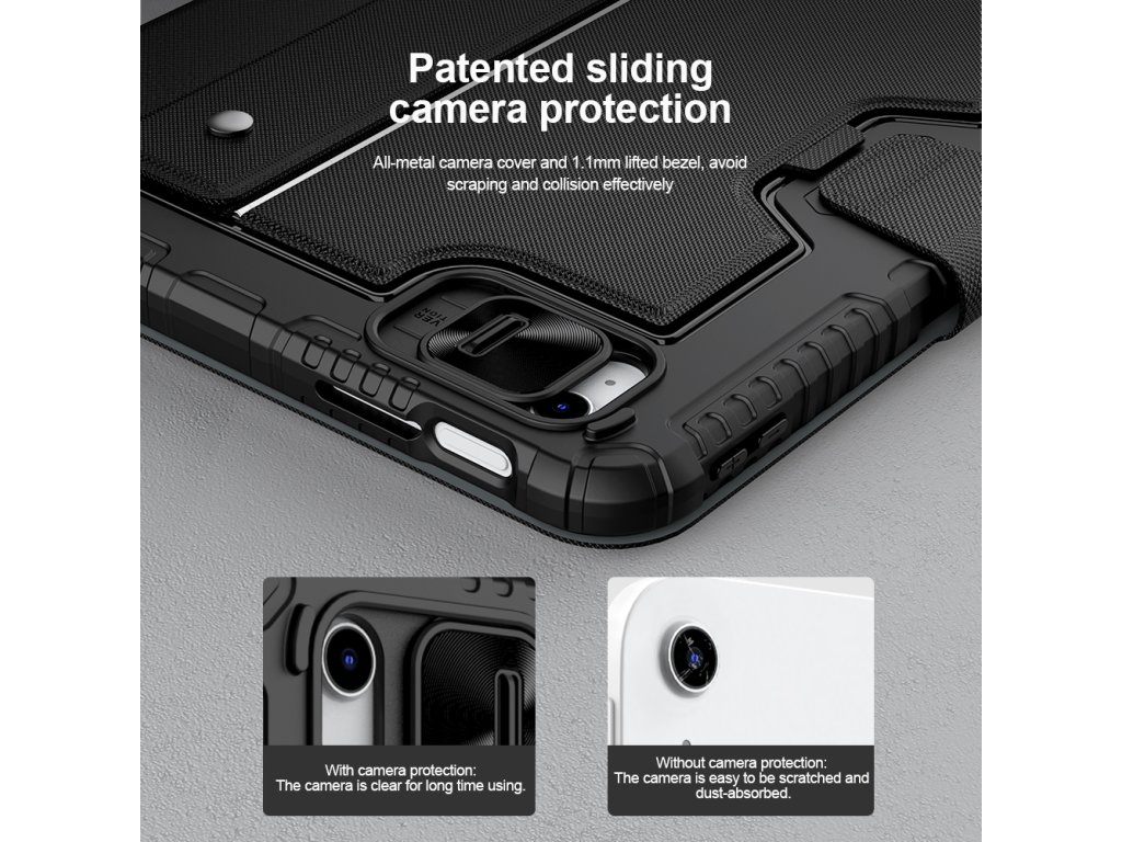 Nillkin Bumper Combo Keyboard Case je víceúčelový ochranný kryt tabletu s klávesnicí, slotem pro Apple Pencil s automatickým nabíjením a plynule nastavitelným úhlem tabletu. Chcete svůj tablet využívat jako mobilní kancelář, nebo jako náhradu za těžký notebook, nebo Vás prostě jen tablet baví, tak přesně pro Vás je zde ochranný kryt Nillkin Bumper Combo. Kryt Vám nabídne špičkově zpracovanou bezdrátovou klávesnici s nízkým zdvihem, tichými a odolnými spínači a precizní profilací kláves pro to nejpohodlnější psaní. Kryt má integrovaný slot s nabíjením přímo pro Apple Pencil. Můžete ho tak mít vždy s sebou a co je hlavní, bude vždy plně nabitý. O nabíjení právě Apple Pencil a napájení bezdrátové klávesnice se stará vysokokapacitní baterie, kterou v případě potřeby dobijete na 100% za pouhé dvě a půl hodiny. Poskytuje provoz pro klávesnici až na dobu 55 dní. Ani zadní strana tabletu ale není nudná. Nejen že nabízí praktickou opěrku pro tablet s plynulým nastavením úhlu, ale také zde najdete posuvný kryt fotoaparátu. Tablet právě díky tomuto patentovanému posuvnému krytu nemůže už být více ochráněn. A to stále není vše, tablet lze opřít jak klasicky na šířku, tak i na výšku. Ať už pro práci s grafikou, psaní textů nebo čtení knih, vybere si prostě každý. Vlastnosti - ochranný kryt s vestavěnou klávesnicí - přihrádka pro Apple Pencil s nabíjením - baterie pro provoz až na 55 dní - plynulé nastavení úhlu tabletu - posuvný ochranný kryt fotoaparátu - možnost opření tabletu na výšku i šířkuDoplňkové parametry