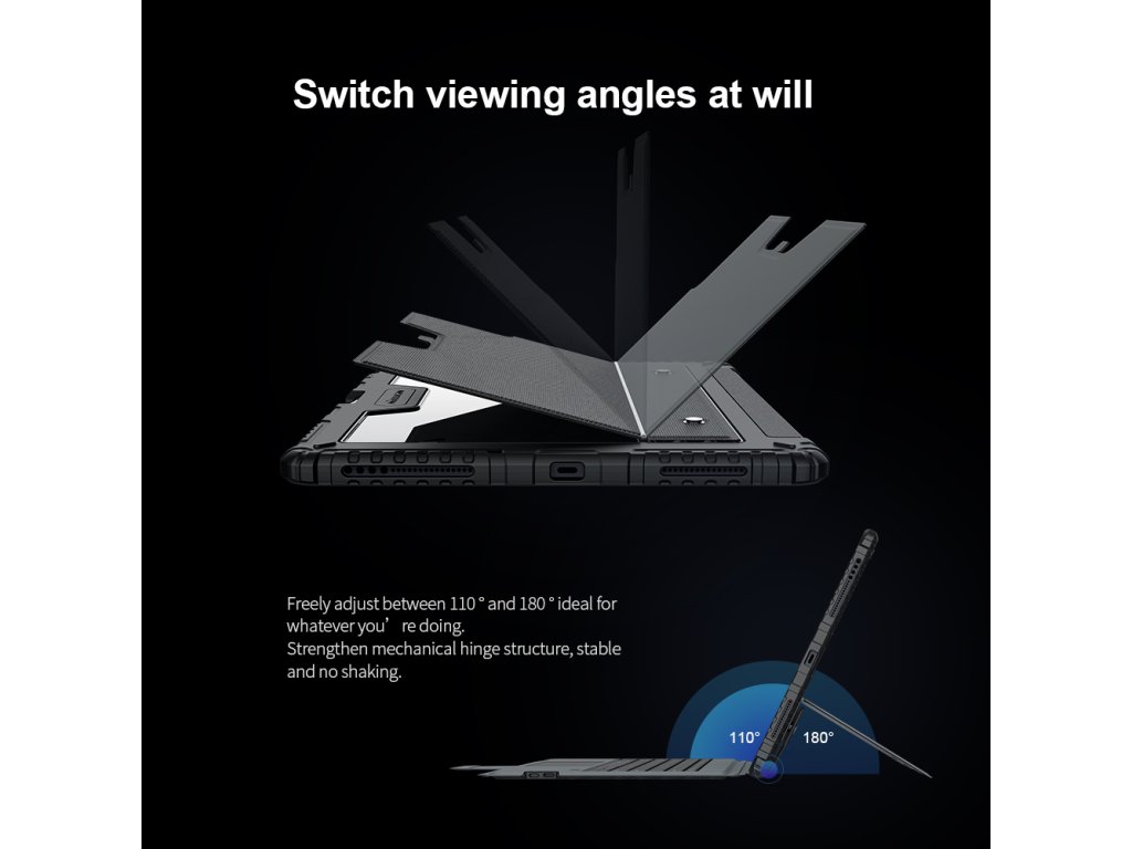 Nillkin Bumper Combo Keyboard Case je víceúčelový ochranný kryt tabletu s klávesnicí, slotem pro Apple Pencil s automatickým nabíjením a plynule nastavitelným úhlem tabletu. Chcete svůj tablet využívat jako mobilní kancelář, nebo jako náhradu za těžký notebook, nebo Vás prostě jen tablet baví, tak přesně pro Vás je zde ochranný kryt Nillkin Bumper Combo. Kryt Vám nabídne špičkově zpracovanou bezdrátovou klávesnici s nízkým zdvihem, tichými a odolnými spínači a precizní profilací kláves pro to nejpohodlnější psaní. Kryt má integrovaný slot s nabíjením přímo pro Apple Pencil. Můžete ho tak mít vždy s sebou a co je hlavní, bude vždy plně nabitý. O nabíjení právě Apple Pencil a napájení bezdrátové klávesnice se stará vysokokapacitní baterie, kterou v případě potřeby dobijete na 100% za pouhé dvě hodiny. Poskytuje provoz pro klávesnici až na dobu 30 dní. Ani zadní strana tabletu ale není nudná. Nejen že nabízí praktickou opěrku pro tablet s plynulým nastavením úhlu, ale také zde najdete posuvný kryt fotoaparátu. Tablet právě díky tomuto patentovanému posuvnému krytu nemůže už být více ochráněn. A to stále není vše, tablet lze opřít jak klasicky na šířku, tak i na výšku. Ať už pro práci s grafikou, psaní textů nebo čtení knih, vybere si prostě každý. Vlastnosti - ochranný kryt s vestavěnou klávesnicí - přihrádka pro Apple Pencil s nabíjením - baterie pro provoz až na 30 dní - plynulé nastavení úhlu tabletu - posuvný ochranný kryt fotoaparátu - možnost opření tabletu na výšku i šířkuDoplňkové parametry
