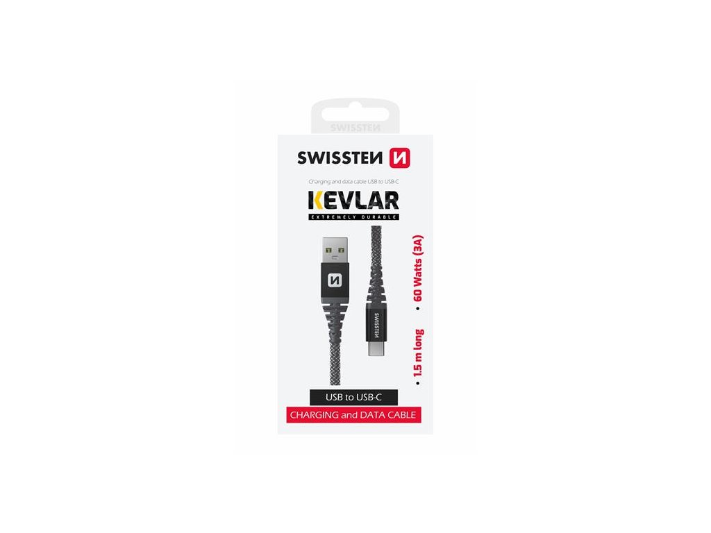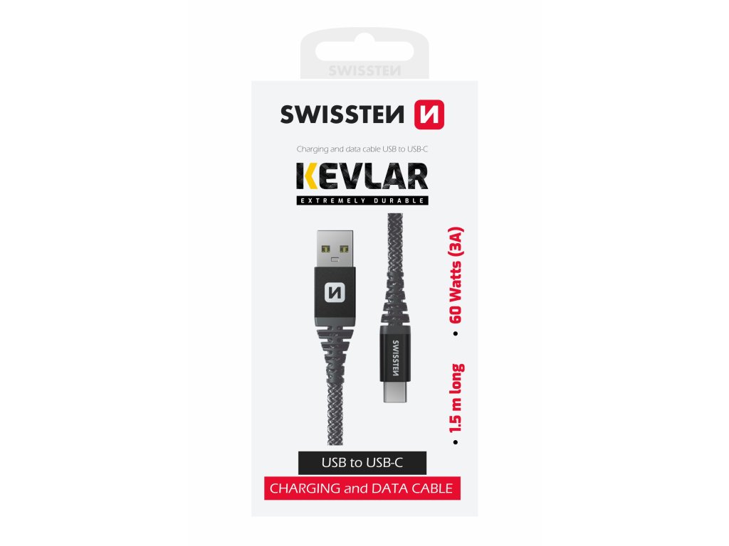 DATOVÝ KABEL SWISSTEN KEVLAR USB / USB-C 1,5 M ANTRACIT