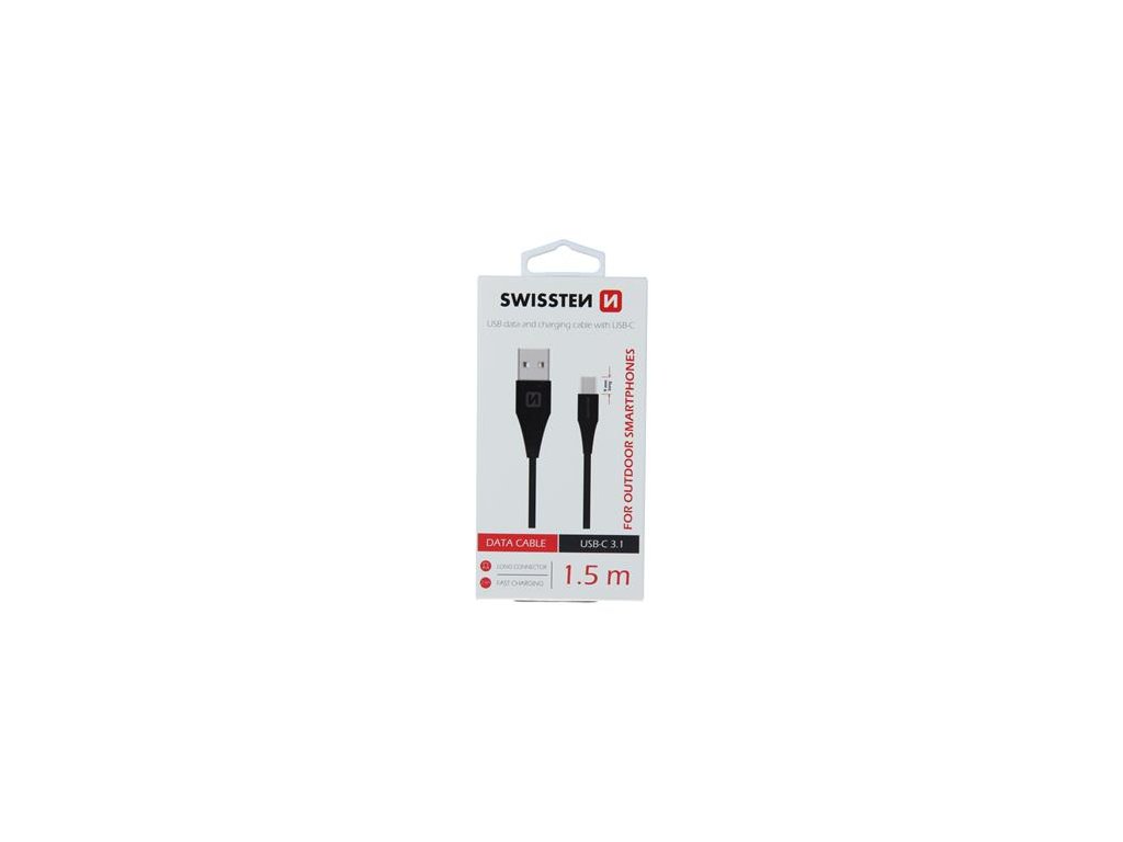 Nabíjecí a datový kabel - Swissten - USB-A/USB-C - 1,5m - Černá