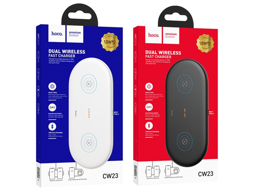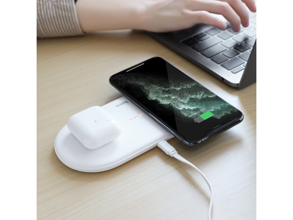 Bezdrátová nabíječka HOCO CW23 je rychlou dobíjecí stanicí, která zvládá současně nabíjet dvě zařízení. V jednu chvíli tak na ni můžete položit dva telefony nebo telefon a sluchátka.