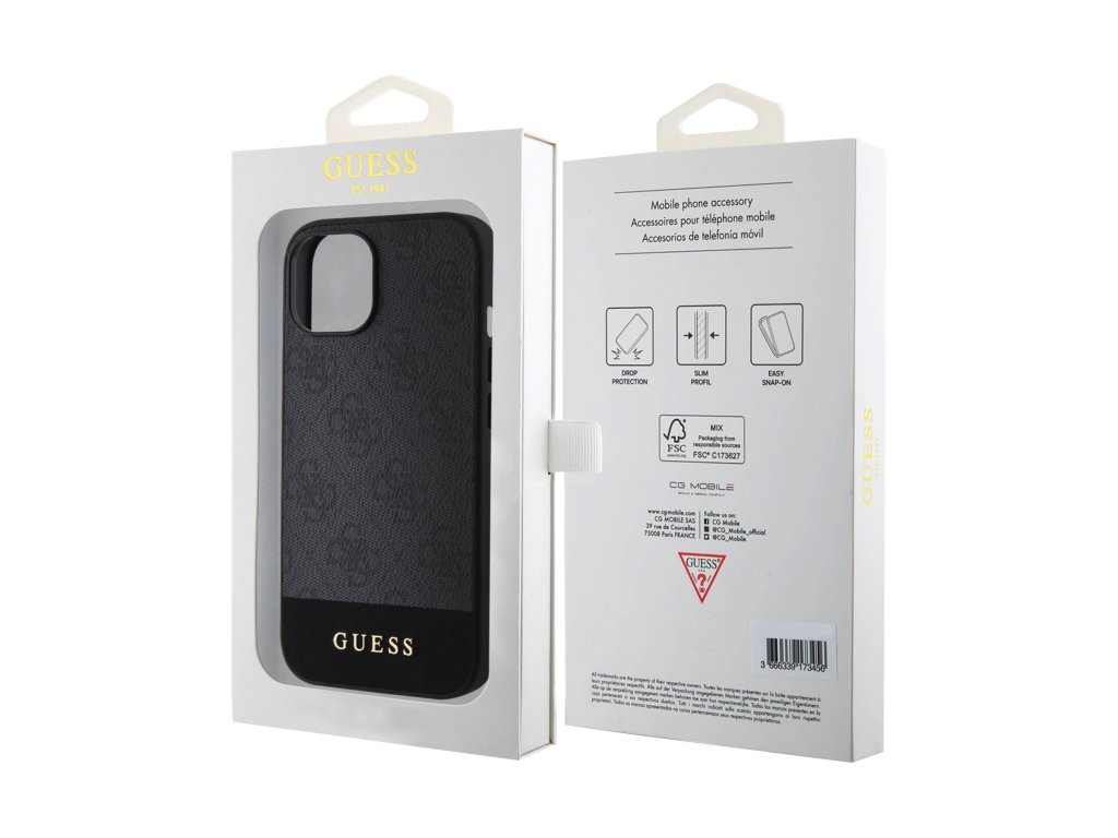 GUESS PU 4G Stripe MagSafe Zadní Kryt pro iPhone 15 Black