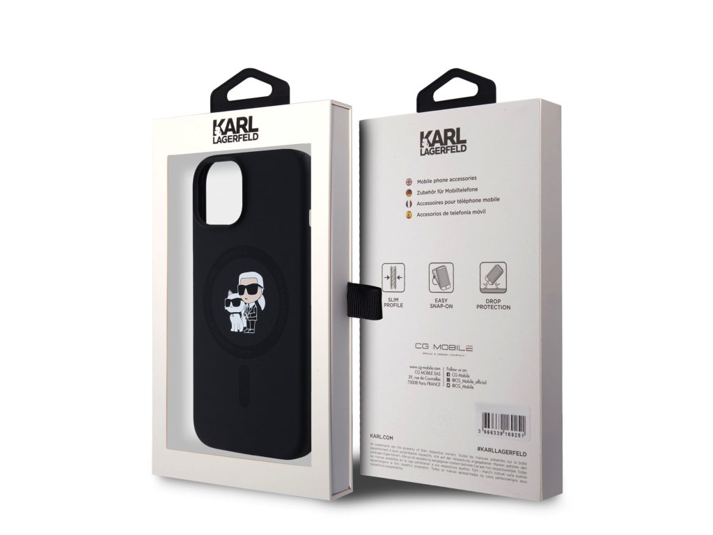 Karl Lagerfeld Liquid Silicone Karl and Choupette Magsafe Zadní Kryt pro iPhone 15 Black