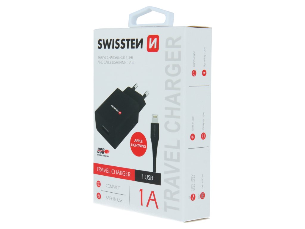Kvalitní nabíječka SWISSTEN s výstupním proudem 1A. Nabíječka má výstup 1xUSB a kabel USB/lightning 1,2m. Baleno v blistru SWISSTEN