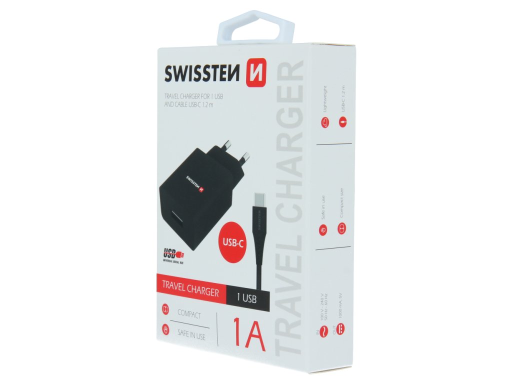 Kvalitní nabíječka SWISSTEN s výstupním proudem 1A. Nabíječka má výstup 1xUSB a kabel USB/USB-C 1,2m. Baleno v blistru SWISSTEN