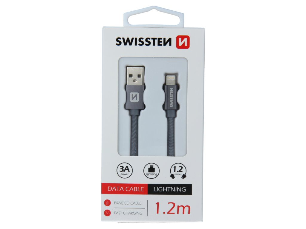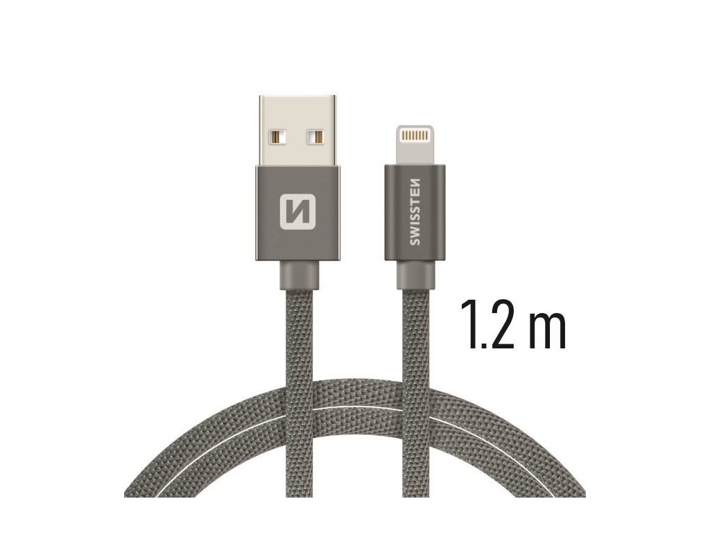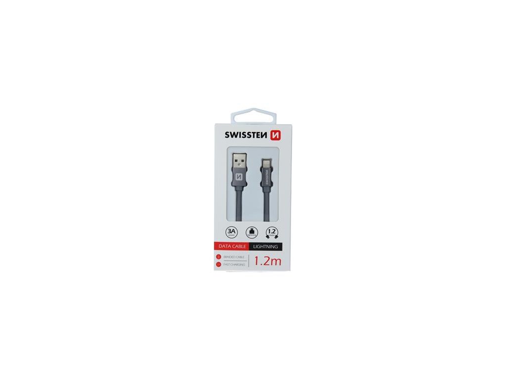 Datový kabel - Swissten - Textile - USB-A na Lightning - 1,2M - Šedý