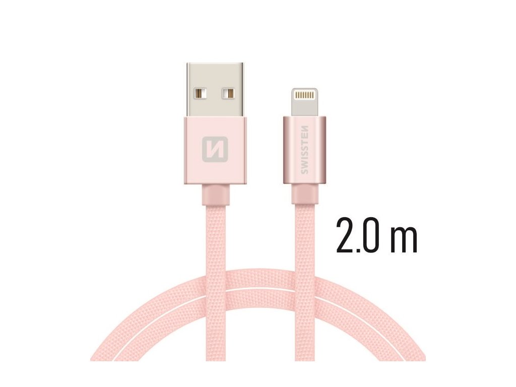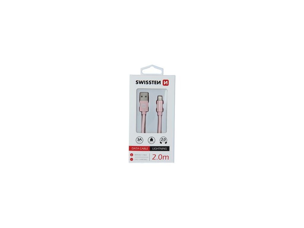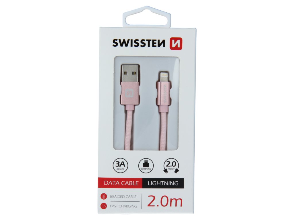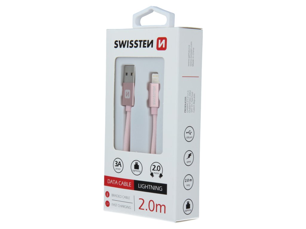Datový kabel - Swissten - Textile - USB-A na Lightning - 2M - Růžový