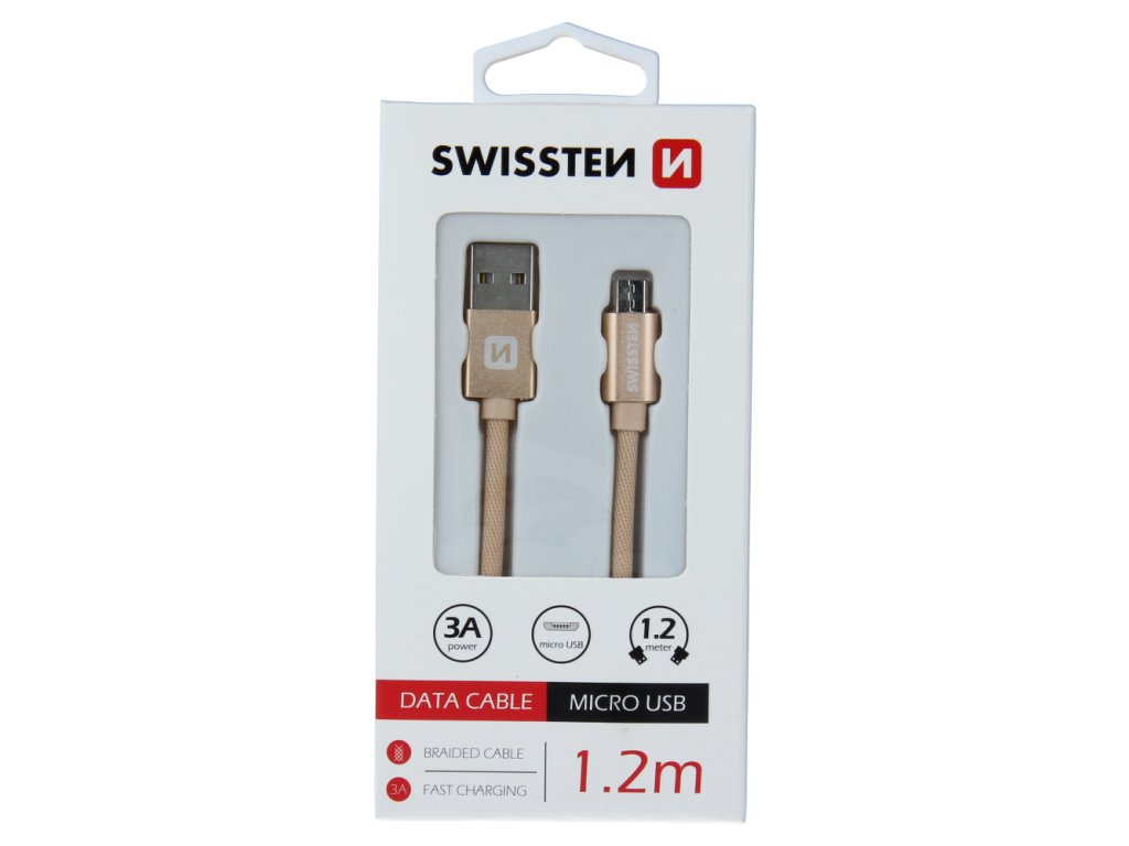 Datový kabel - Swissten - Textile - USB-A na microUSB - 1,2M - Zlatý