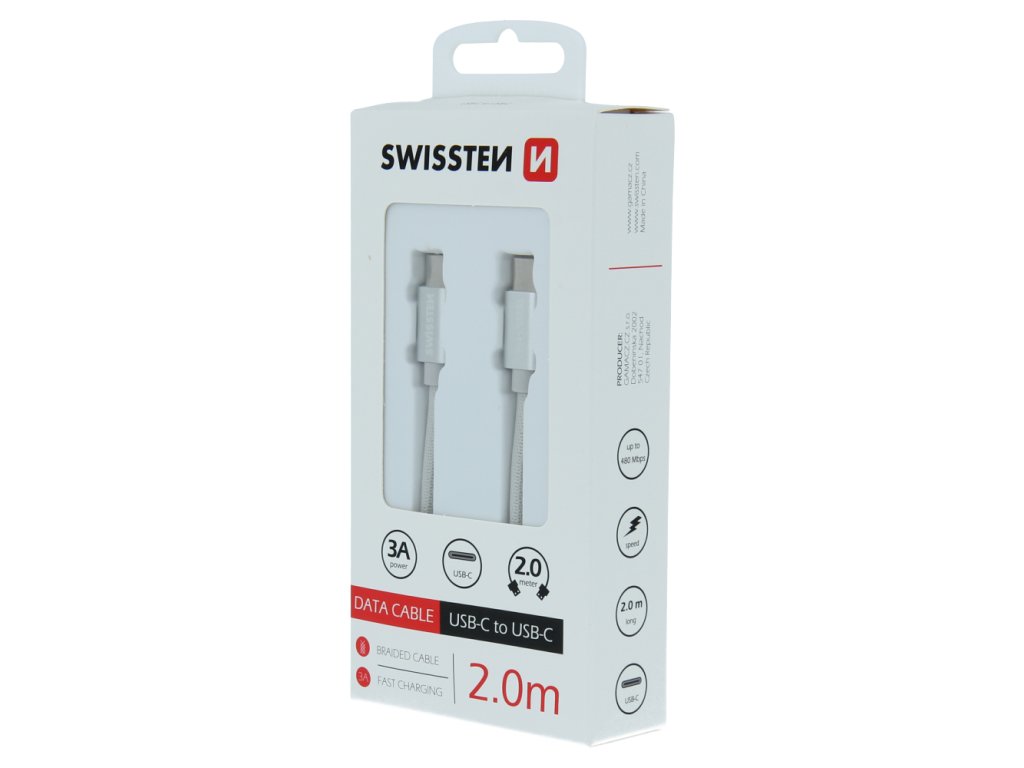 Datový kabel - Swissten - Textile - USB-C na USB-C - 2M - Stříbrný