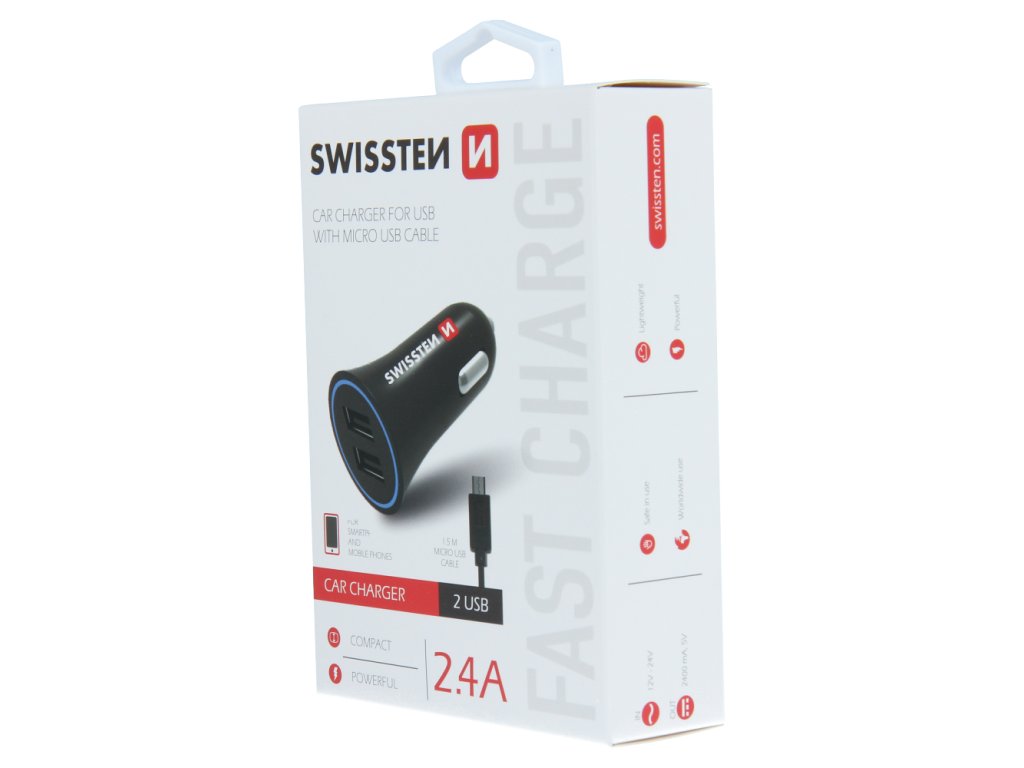 Kvalitně zpracovaný adaptér do zapalovače SWISSTEN. Díky výstupnímu proudu až 2,4A a dvěma výstupním USB portům nebude problém dobíjet jak smartphone, tak i tablet. Součástí balení je také 1,5 m dlouhý kabel USB/micro USB. Baleno v krabičce Swissten. SPECIFIKACE: vstupní napětí: 12V – 24V, výstupní napětí: 5V, max. výstupní proud: 2,4A, teplota použití: 0-45°C Délka kabelu: 150cm