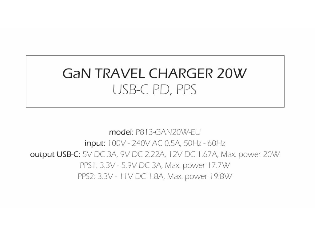 USB-C: 5V DC 3A, 9V DC 2.22A, 12V DC 1.67A, 20W Max