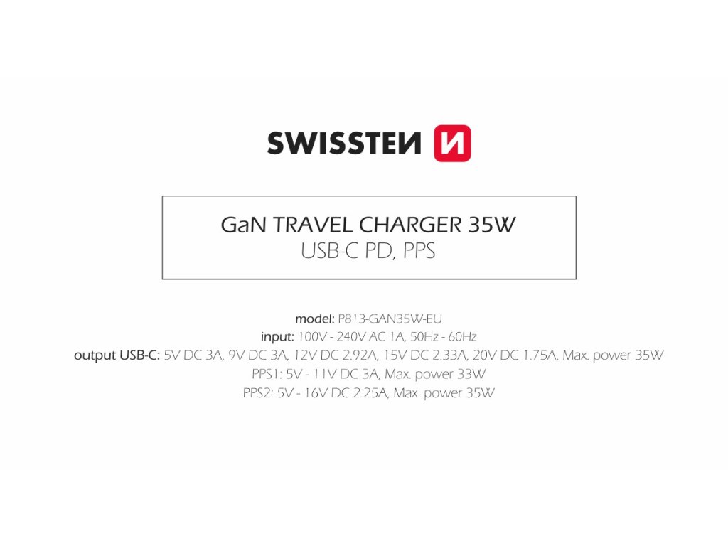 Hledáte kvalitní GaN nabíječku s vysokým výkonem a malými rozměry? Našli jste správně. S naší Swissten GaN nabíječkou o výkonu 35 Wattů, již nebudete muset čekat několik hodin na dobití vašeho telefonu, tabletu či jiného mobilního zařízení. Díky rychlonabíjecímu protokolu Power Delivery ušetříte mnoho času stráveného čekáním na dobití.
