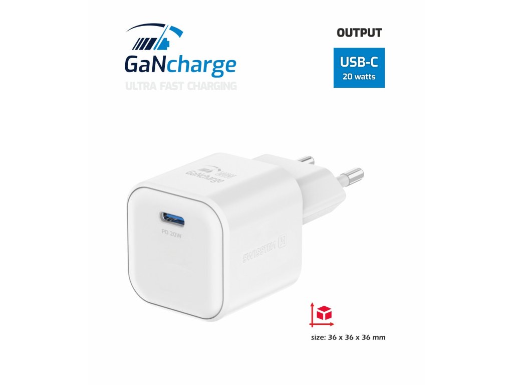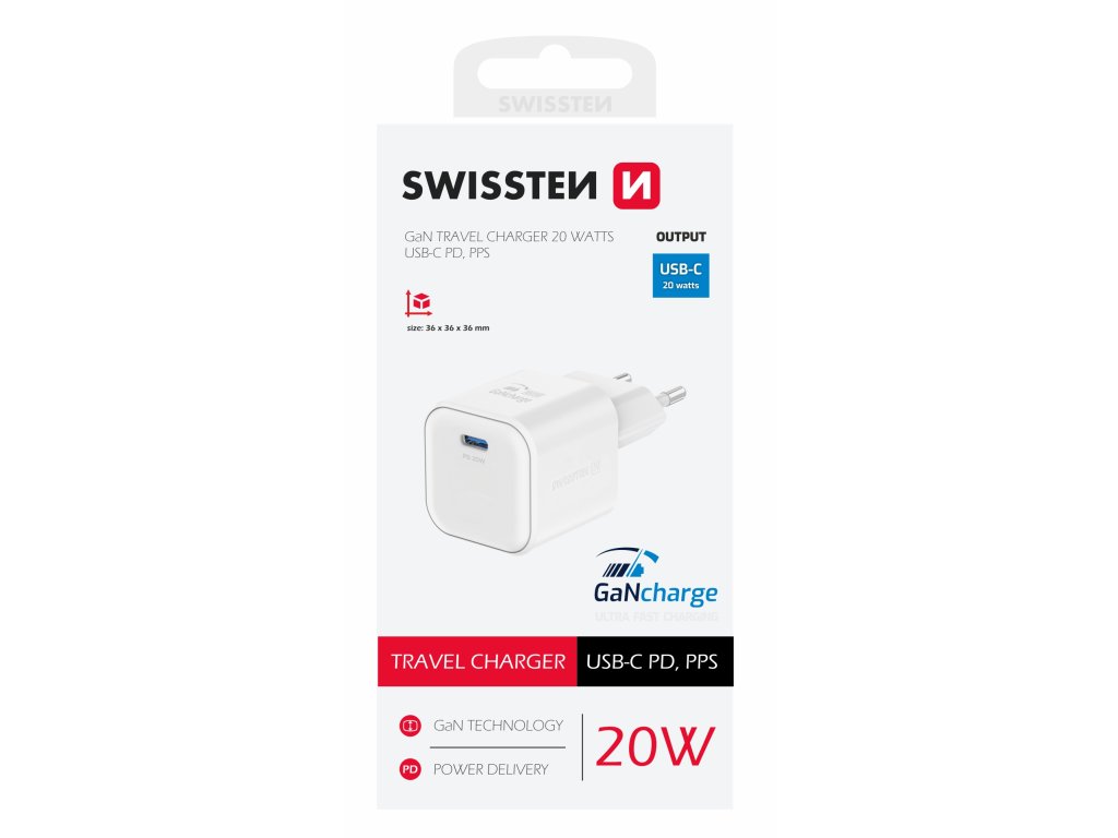 SWISSTEN SÍŤOVÝ ADAPTÉR GaN 1x USB-C 20W POWER DELIVERY BÍLÝ