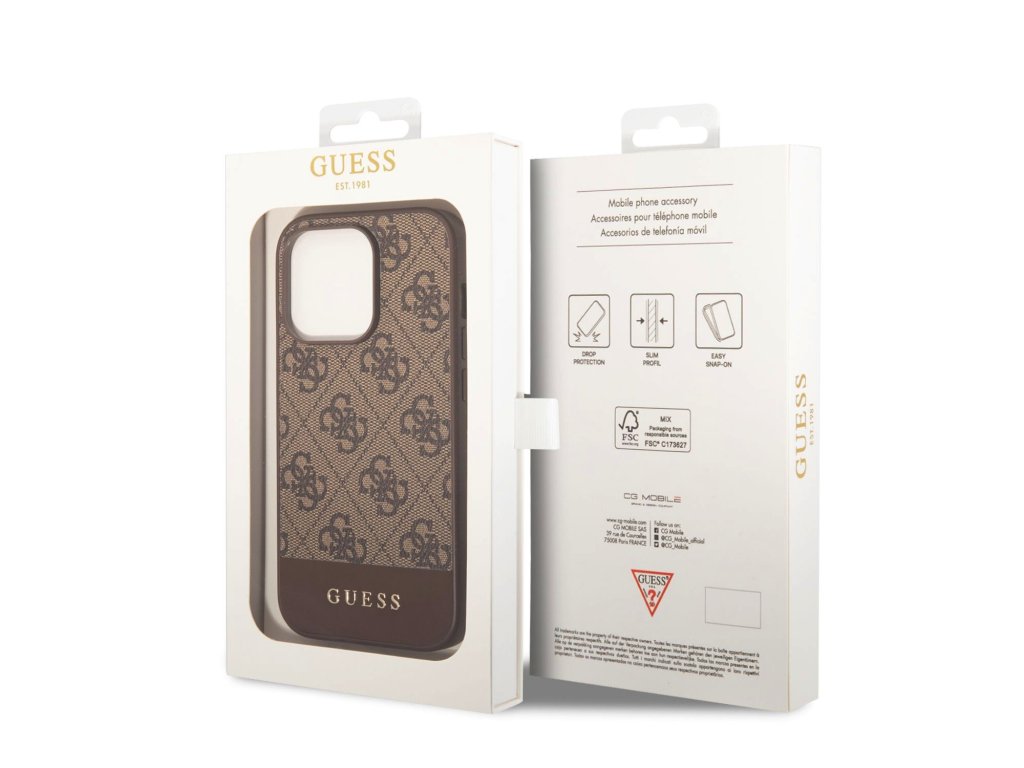 Guess 4G Stripe Zadní Kryt pro iPhone 14 Pro Max Brown