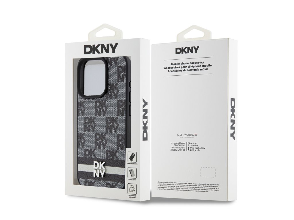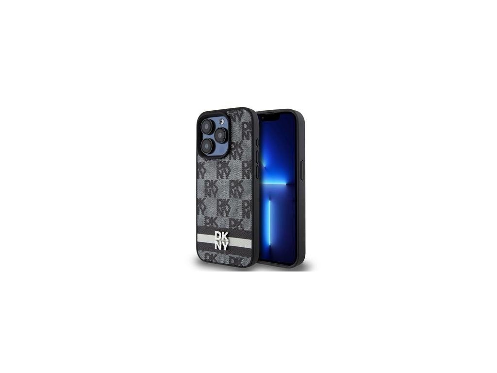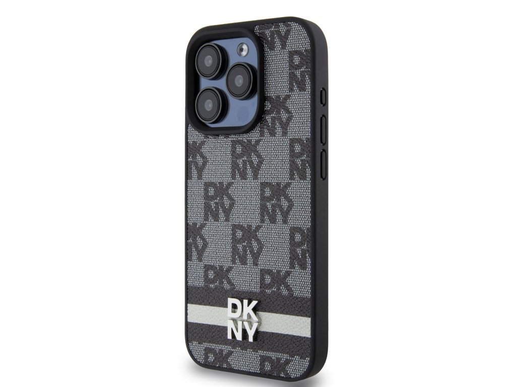 DKNY PU Leather Checkered Pattern and Stripe Zadní Kryt pro iPhone 14 Pro Black