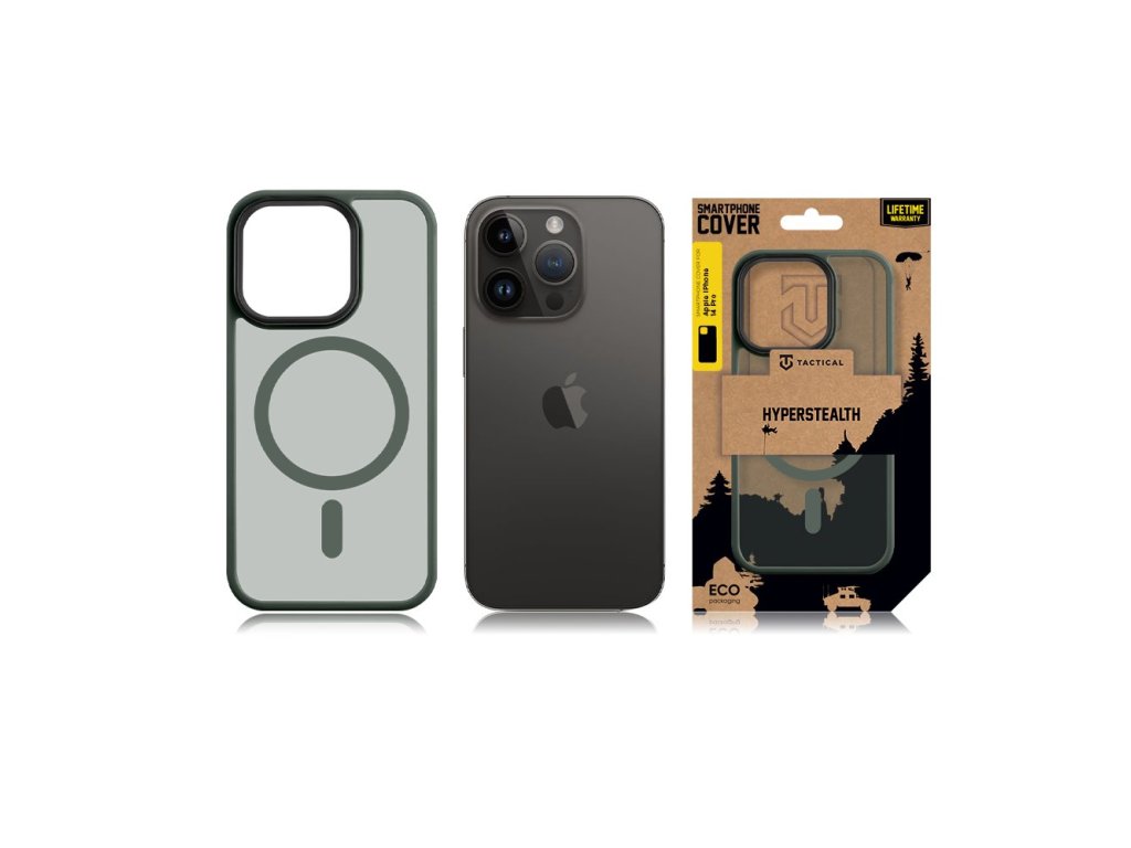 4 barvy, průsvitná záda, podpora Apple MagSafe. Tactical MagForce Hyperstealth vyniká jednoduchým barevným designem, který všude zapadne a hlavně chrání tvůj iPhone. ČISTÝ DESIGN Čistý design s transparentní plochou dodá pouzdru jednoduchost, ergonomičnost a jednoduchý cíl. Jádro krytu je odolné proti nárazu a ochranný mantinel chrání obrazovku telefonu při pádu nebo položením displejem dolu. Okolo čoček fotoaparátu je dominantní ochranný rám. Rám je o něco vyšší než daná soustava čoček a chrání je tak před poškrábáním a poničením. MAGFORCE Kryt Tactical MagForce Hyperstealth disponuje podporou Apple MagSafe. V klidu tedy můžeš využívat bezdrátové nabíjení nebo ostatní magnetické možnosti Apple MagSafe. NEODOLATELNĚ ODOLNÝ U nás v Tactical dbáme na to, aby věci něco vydržely. Proto tento kryt v dané kategorii nabízí jen to nejlepší. Při výrobě jsme použili velice odolné materiály a aplikovali nejnovější technologie pro co nejlepší výstup ochrany. Telefon tak zůstane v bezpečí i v těch nejextrémnějších podmínkách. KONEKTORY Díky preciznímu provedení zůstávají všechny konektory a tlačítka telefonu přístupné. Vsaď na kryty Tactical a zajisti si absolutní ochranu. BE ECO My v Tactical máme rádi přírodu. Všechny naše produkty jsou balené do ECO krabiček z recyklovaného papíru tak, aby co nejméně zatěžovaly životní prostředí. Myslete takticky! KLÍČOVÉ VLASTNOSTI Podpora Apple MagSafe Originální design Průsvitný design SPECIFIKACE Materiál: TPU/ PC MagSafe: Ano Určeno pro Apple iPhone 14 Pro Barva: Tmavě zelená Forest Green