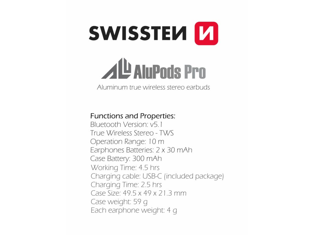 Bluetooth sluchátka - Swissten - Alupods Pro - Černý
