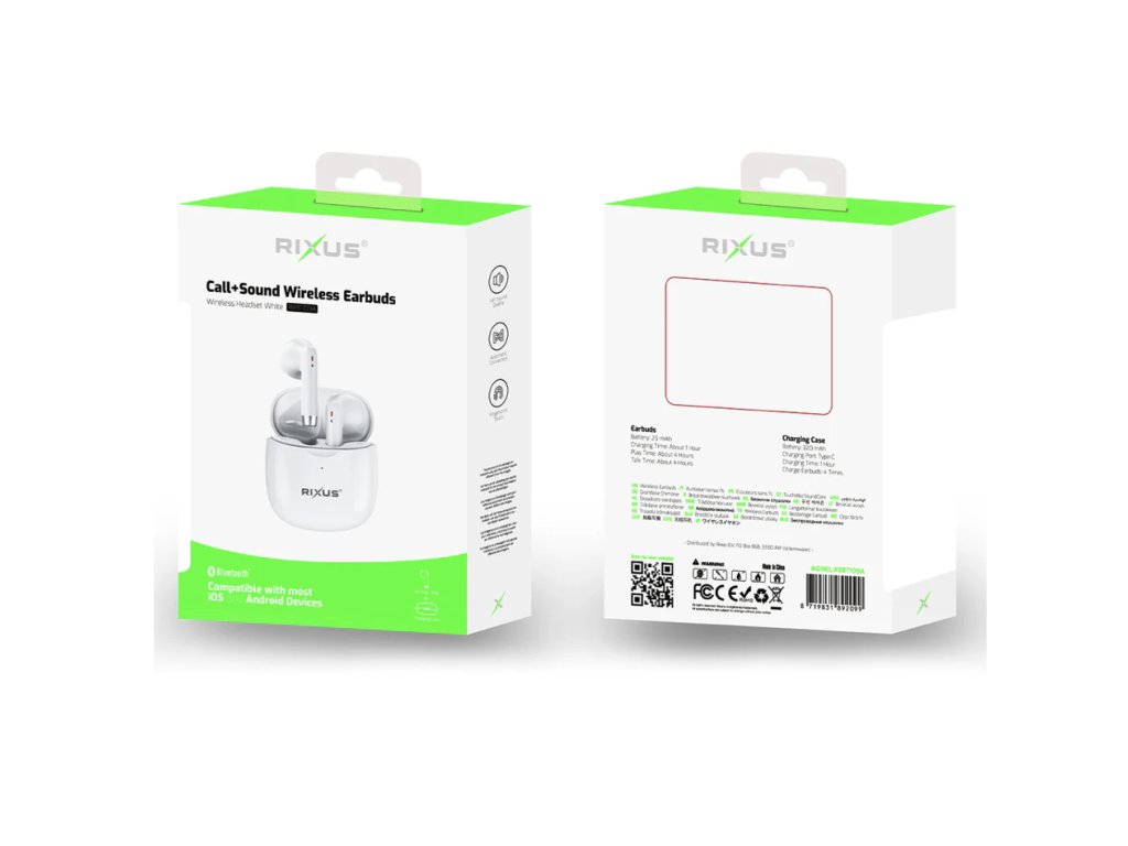 Rixus - Bezdrátová sluchátka - Bílá