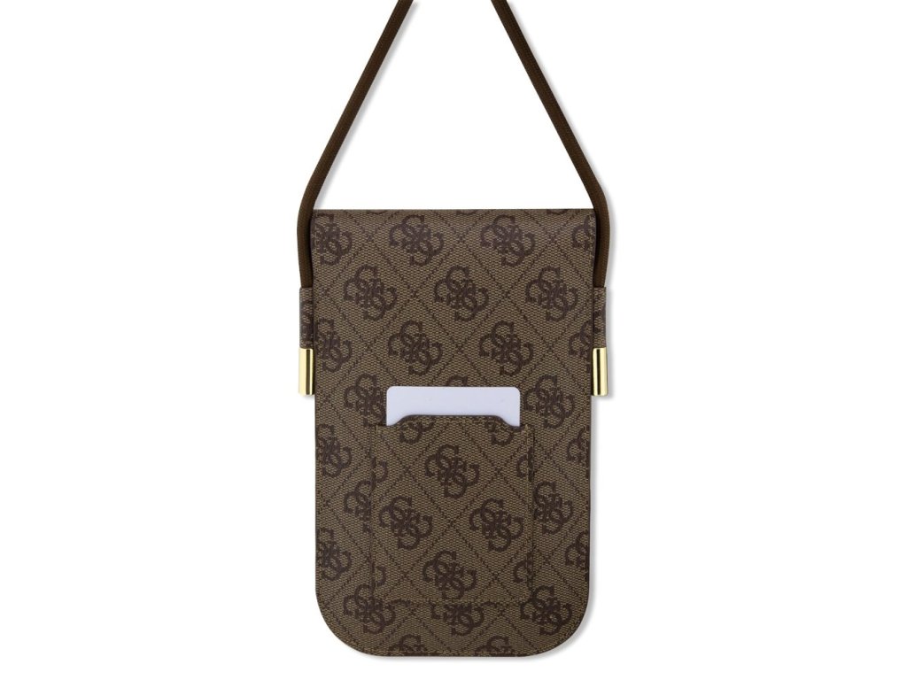 Guess PU 4G Metal Logo Script Phone Bag Brown